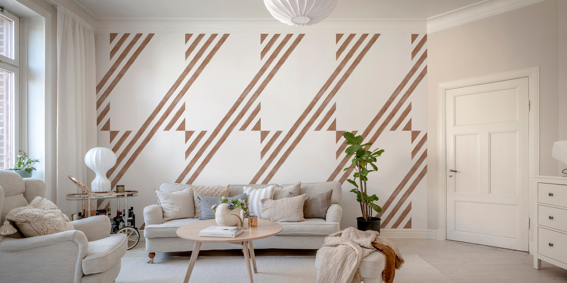 This terracotta geometric diagonal stripe wallpaper brings a warm, modern touch to your home. The bold, clean lines of the design create a contemporary look, while the earthy terracotta tones add warmth and depth to any room. Perfect for living rooms, bedrooms, or offices, this geometric wallpaper pairs effortlessly with both minimalist and modern interiors. The diagonal stripes provide a dynamic visual appeal, making it ideal for feature walls or full-room applications. This terracotta striped wallpaper offers a stylish and versatile design that complements various color schemes and furniture styles.