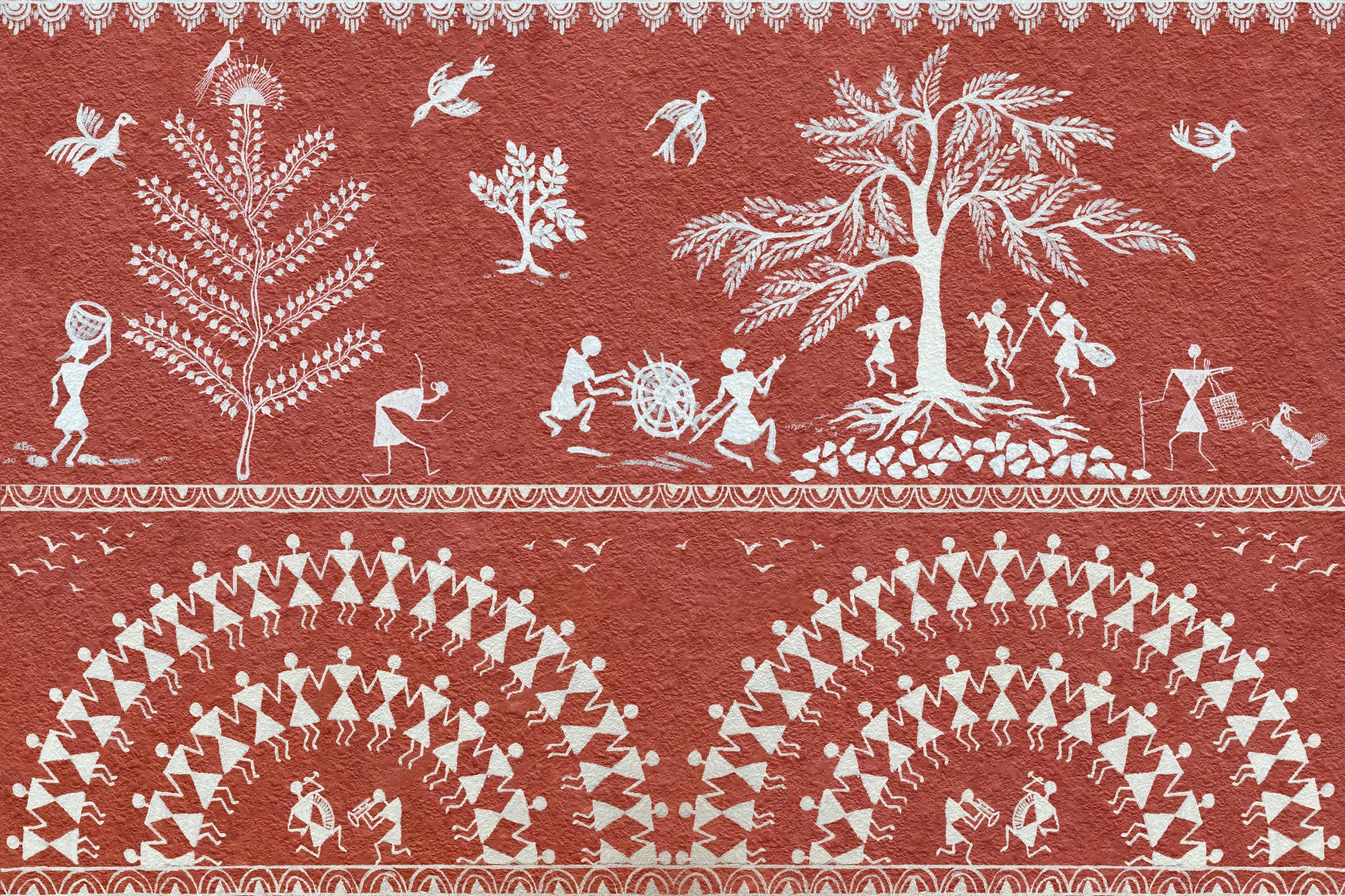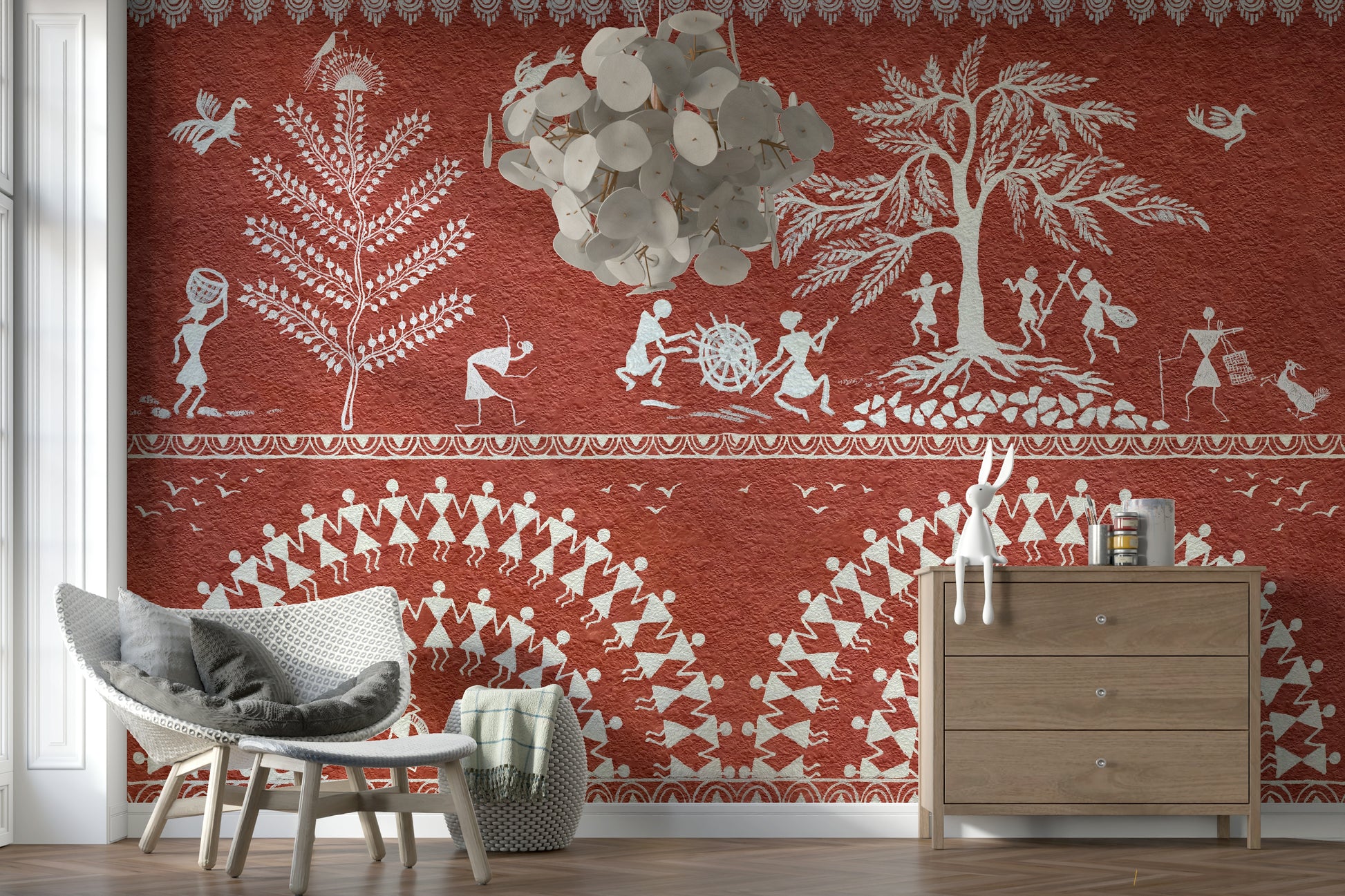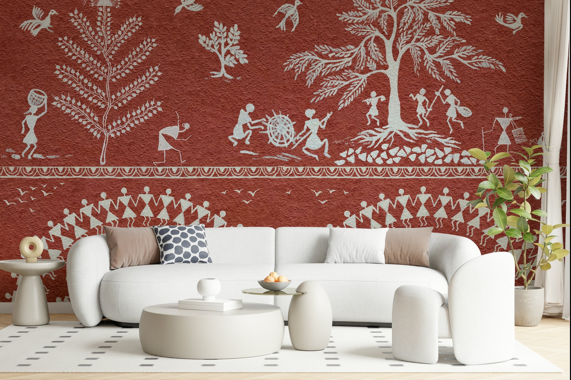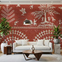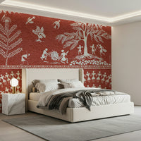 Imbue your interior with the rustic charm of tribal art using this terracotta and white wallpaper for walls. It evokes a sense of cultural heritage, making a striking statement in any room. Ideal for creating an accent wall in your study, a cosy atmosphere in your bedroom, or bringing a unique touch to your dining area, its warm colour and minimalist design creates an inviting ambiance. This timeless design complements both modern and bohemian decor, adding depth and character to your space.