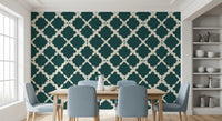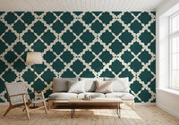 Textured Lattice Trellis Geometric Deep Teal Minimalist Modern Wallpaper⁠