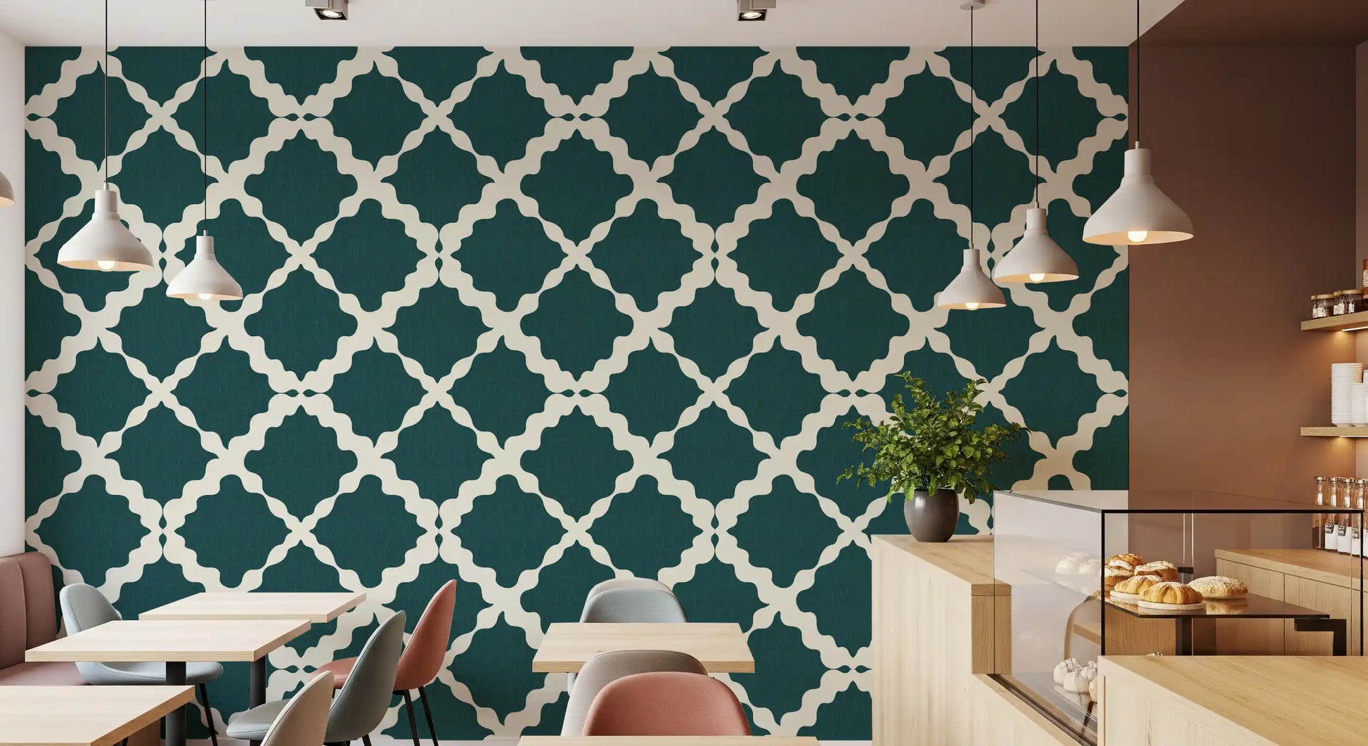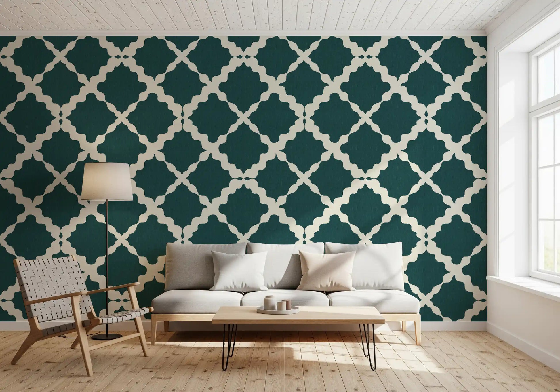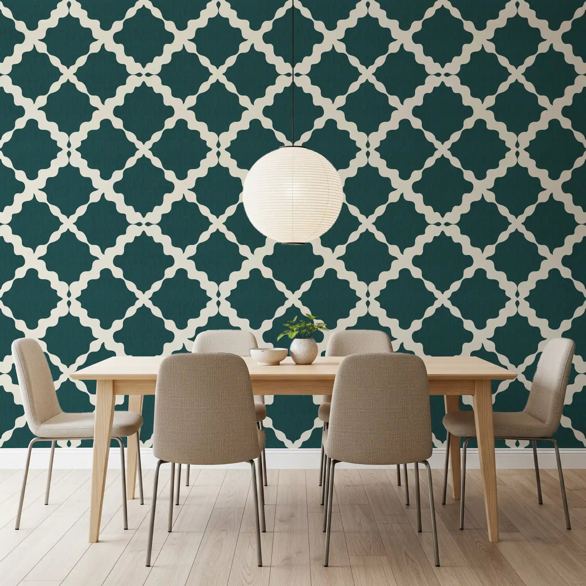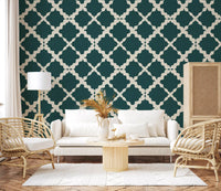 Immerse your space in sophisticated tranquillity with this stunning wallcovering, a perfect blend of modern elegance and timeless design. The 'Textured Lattice Trellis Geometric Deep Teal Minimalist Modern' design features an exquisite deep teal shade, rich with a subtle, linen-like texture that adds depth and tactile appeal to any room. Overlaying this luxurious foundation is a captivating off-white geometric lattice pattern. Far from rigid, its unique curvilinear shapes create an inviting, organic flow that softens the structured trellis, offering a fresh, contemporary take on classic motifs. This minimalist yet impactful design effortlessly elevates interiors, bringing a serene, cohesive aesthetic. Ideal for creating a feature wall or a full-room transformation, it promises to infuse your walls with understated luxury and a distinctly modern charm.