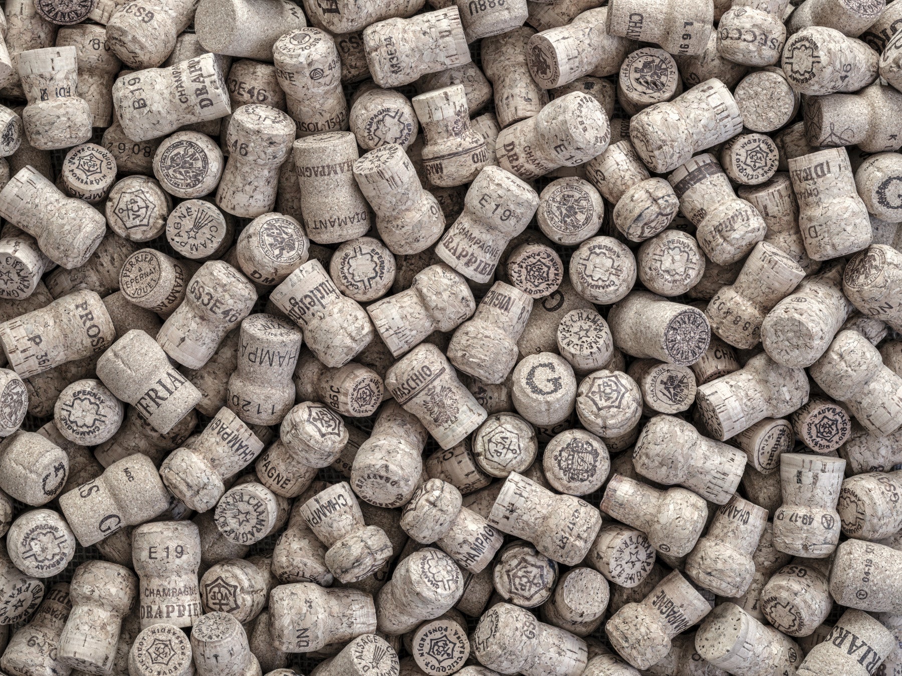 Numerous champagne corks.