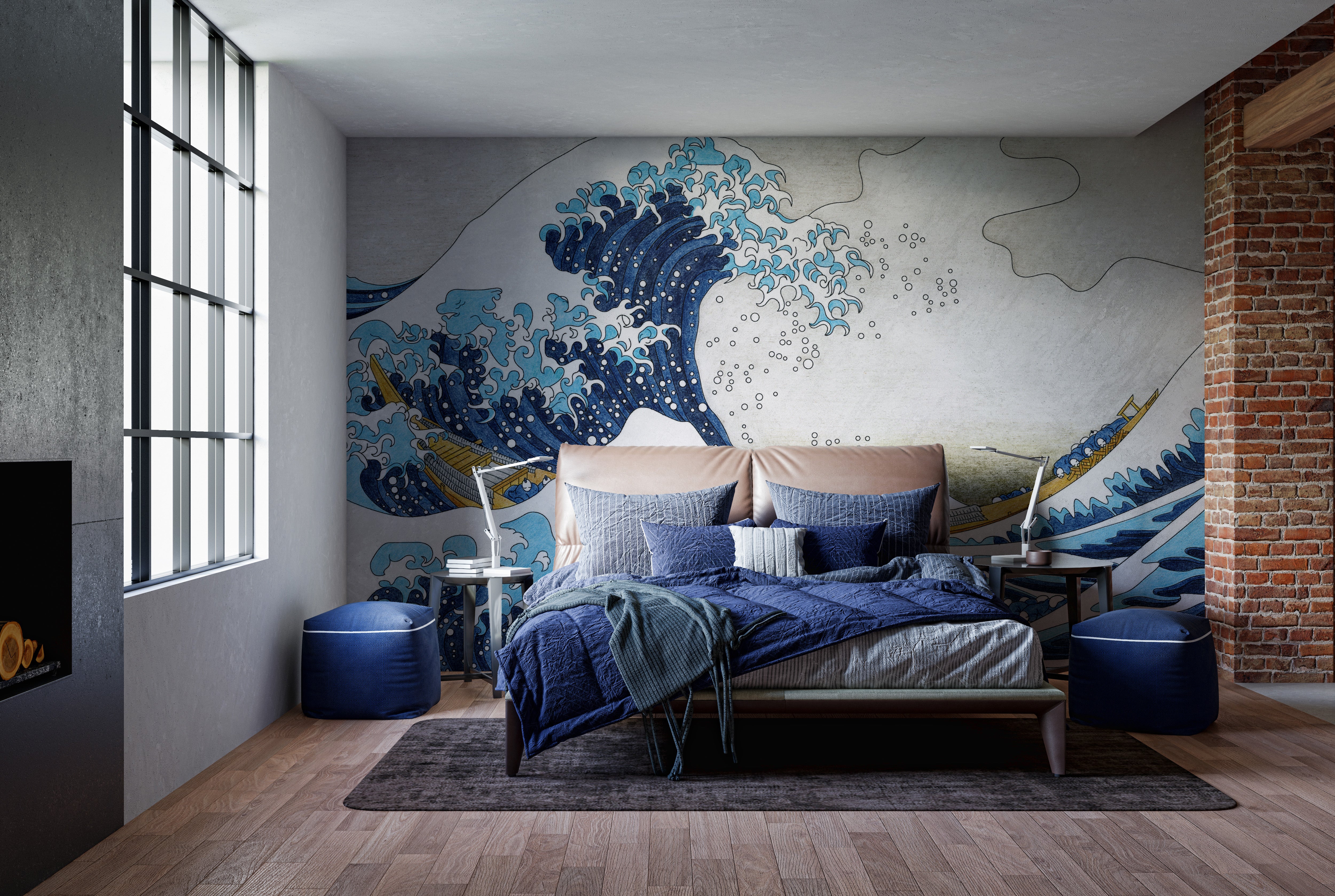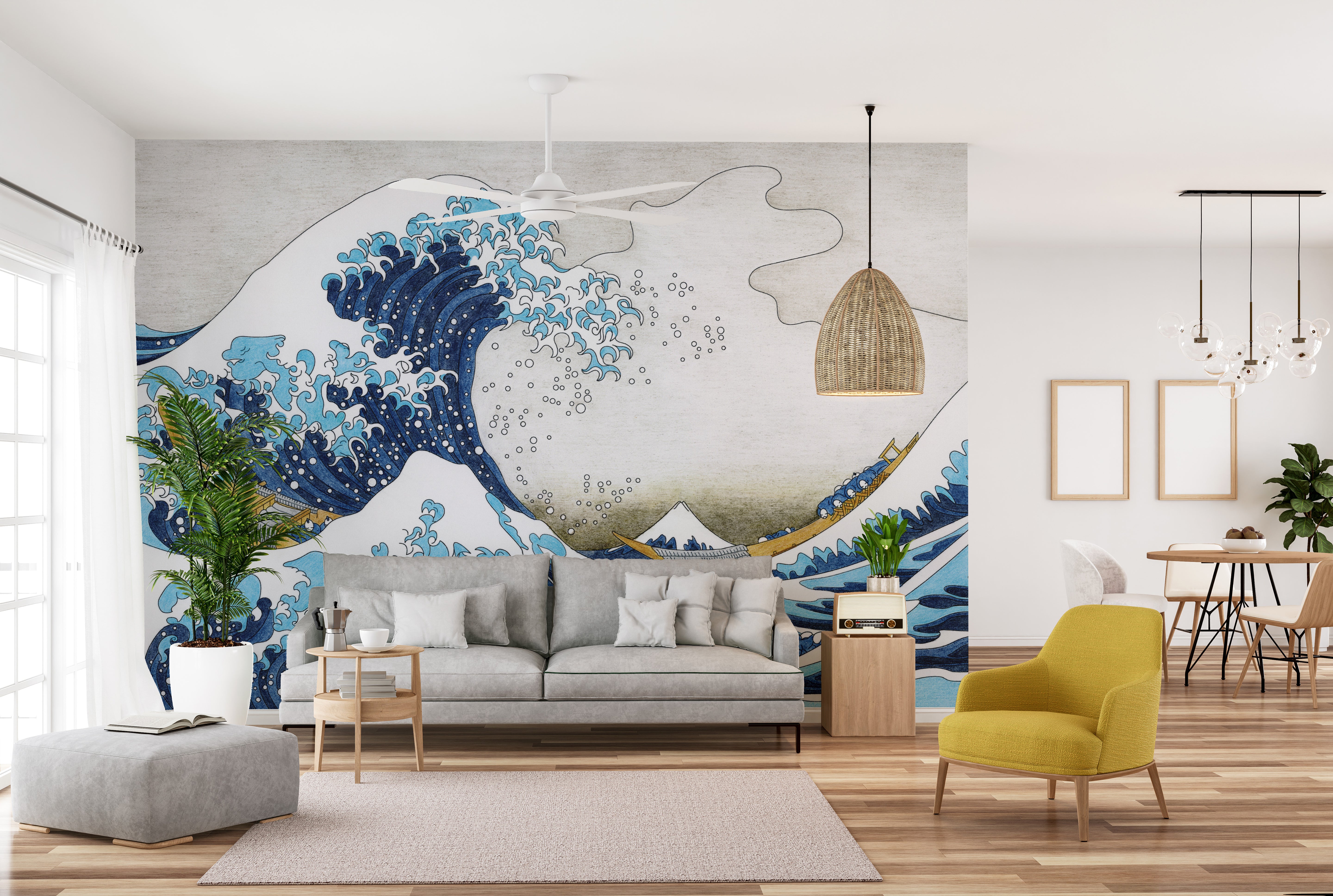 Immerse yourself in the iconic power and beauty of The Great Wave off Kanagawa with our wallpaper mural. This timeless piece of art is brought to life on your walls, offering a dynamic and dramatic focal point for any room. Ideal for those who appreciate classic art with a modern twist, this wallpaper for walls is perfect for living areas, study rooms, or any space that could benefit from a splash of historical elegance and oceanic energy. The waves wallpaper mural captures the majestic force of the wave in stunning detail, creating a captivating visual experience.