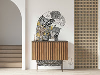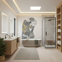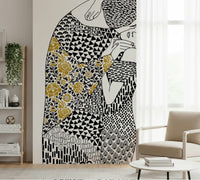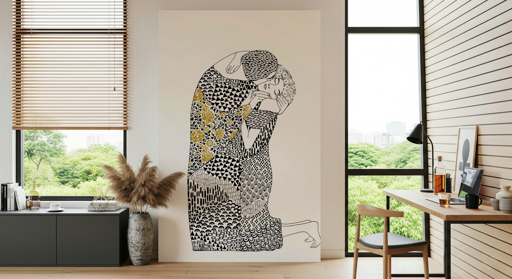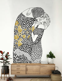 Immerse yourself in the tender embrace of "The Kiss," a captivating wall décor that echoes timeless romance. This artwork portrays a couple locked in an intimate moment, rendered in striking graphic patterns with a touch of golden floral elegance. The intricate details invite you to explore the depth of connection. Feel the intensity and passion with every glance. The intertwining figures are enveloped in geometric designs, while the flowing floral accent adds an organic counterpoint, symbolising the bloom of love. "The Kiss" is more than just an image; it's an emotional narrative for any living space. Let it be a visual declaration of affection, breathing life and warmth into your home.