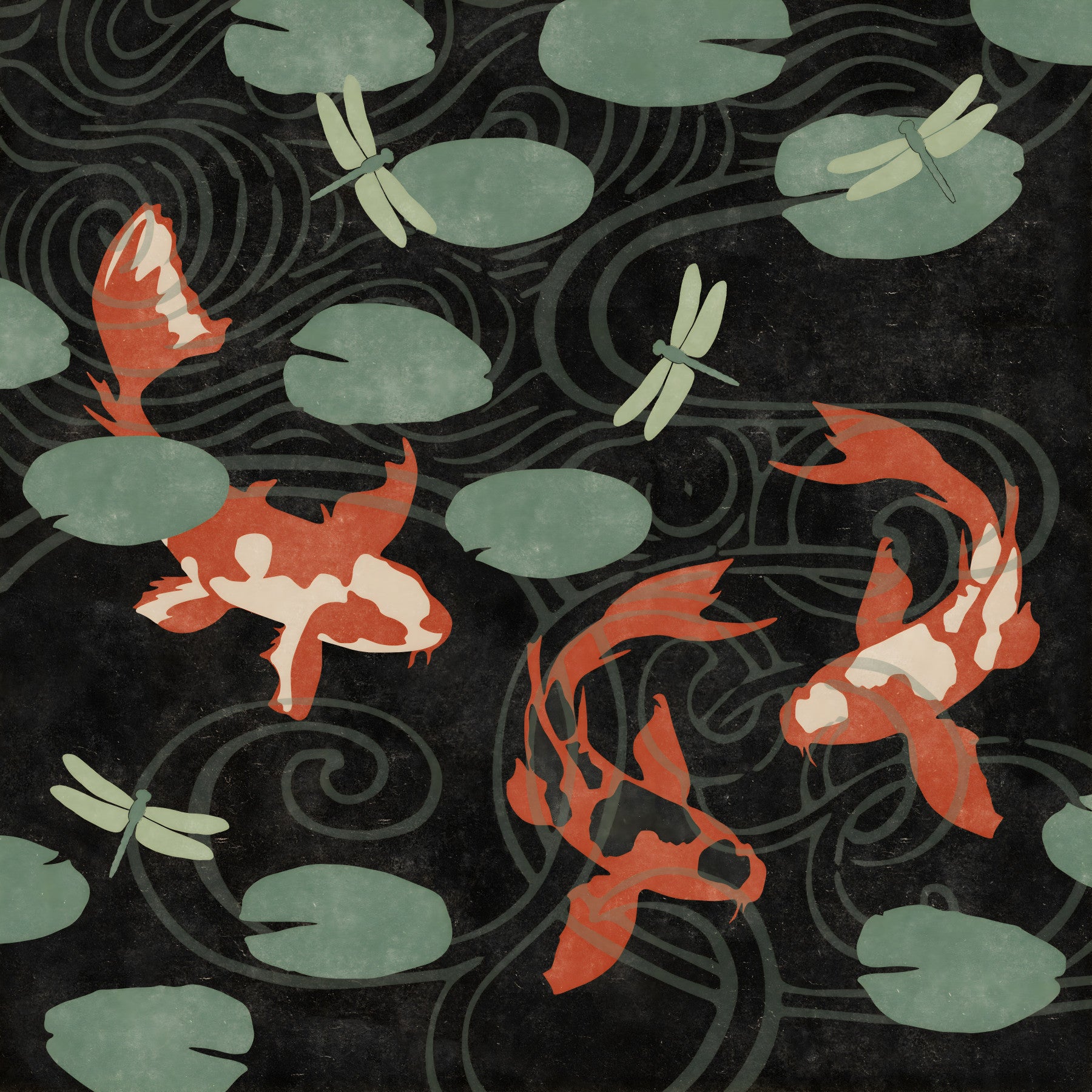 Transform your walls into a peaceful oasis with our Three Koi Pond Wallpaper. Inspired by traditional Japanese designs, a trio of vibrant red, cream and black koi fish grace the surface of a swirling pond. Against a backdrop of deep waters and jade lily pads this wallpaper brings a sense of serenity and beauty to any space. Perfect for bedrooms, living rooms, or any spot in the home that needs a vibrant touch, this wallpaper will turn your room into an inviting paradise.