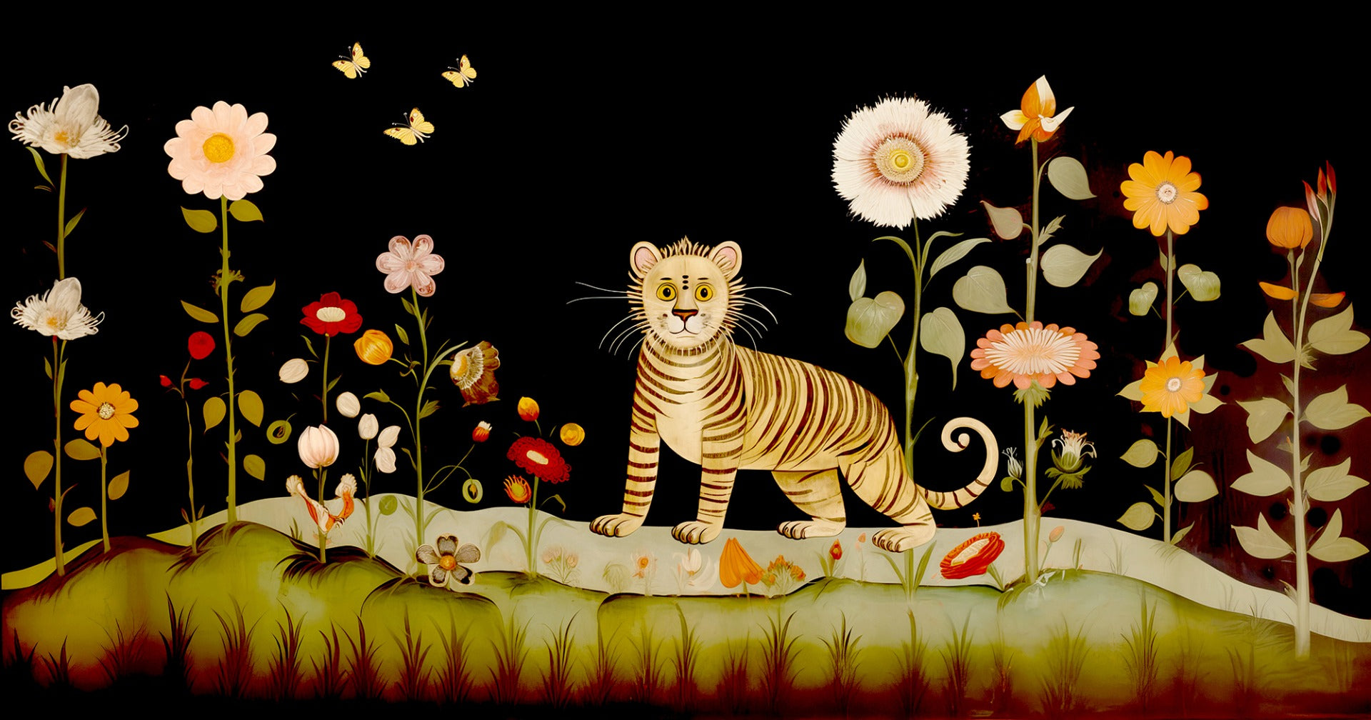 Unique Tibetan flower tiger mural wallpaper for a vibrant, artistic touch.
