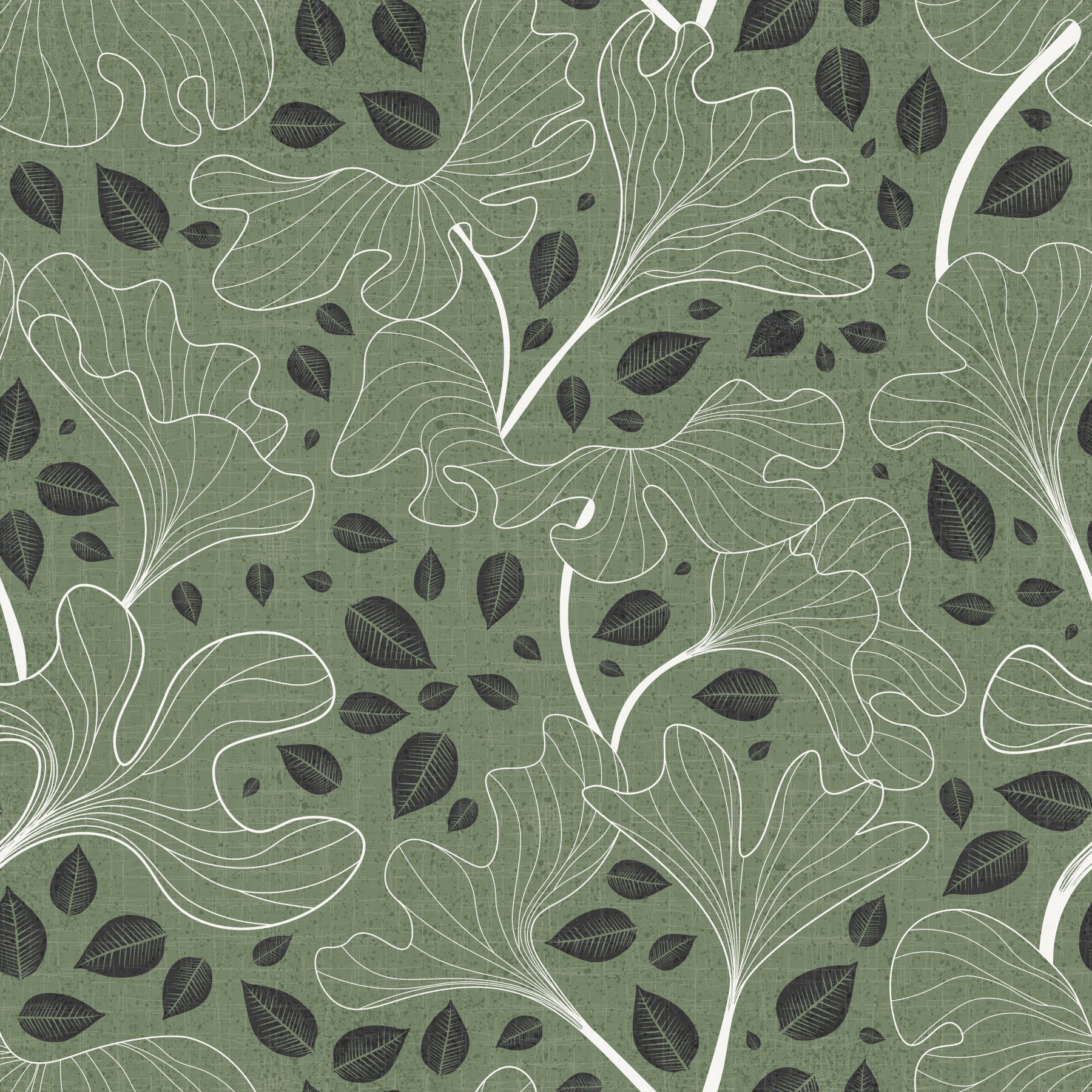 Timeless Ginkgo Garden Green and White Wallpaper.