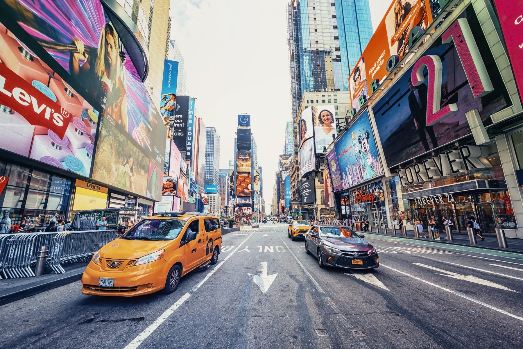 Experience the vibrant energy of Times Square with this captivating wallpaper for walls. The image brings the iconic New York City landmark to life, showcasing its towering buildings, dazzling billboards, and bustling streets. Notice the vivid colours that pop against the urban backdrop. This design injects excitement into any space, perfect for a living room, home office, or even a teen's bedroom. Bring the buzz of the city that never sleeps right to your wall.