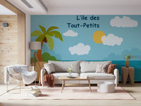 Bring a touch of seaside charm to any room with this adorable wallpaper for walls. Soft blues mimic the ocean and sky, while a sandy beach with a cute turtle and starfish invites a sense of playful serenity. A lone palm tree adds tropical flair, and the simple wave details complete the scene. Ideal for a nursery, child's bedroom, or bathroom, this wallpaper creates a calming atmosphere. Its bright but soft palette and simple design enhance smaller spaces and add an element of whimsy to larger rooms.