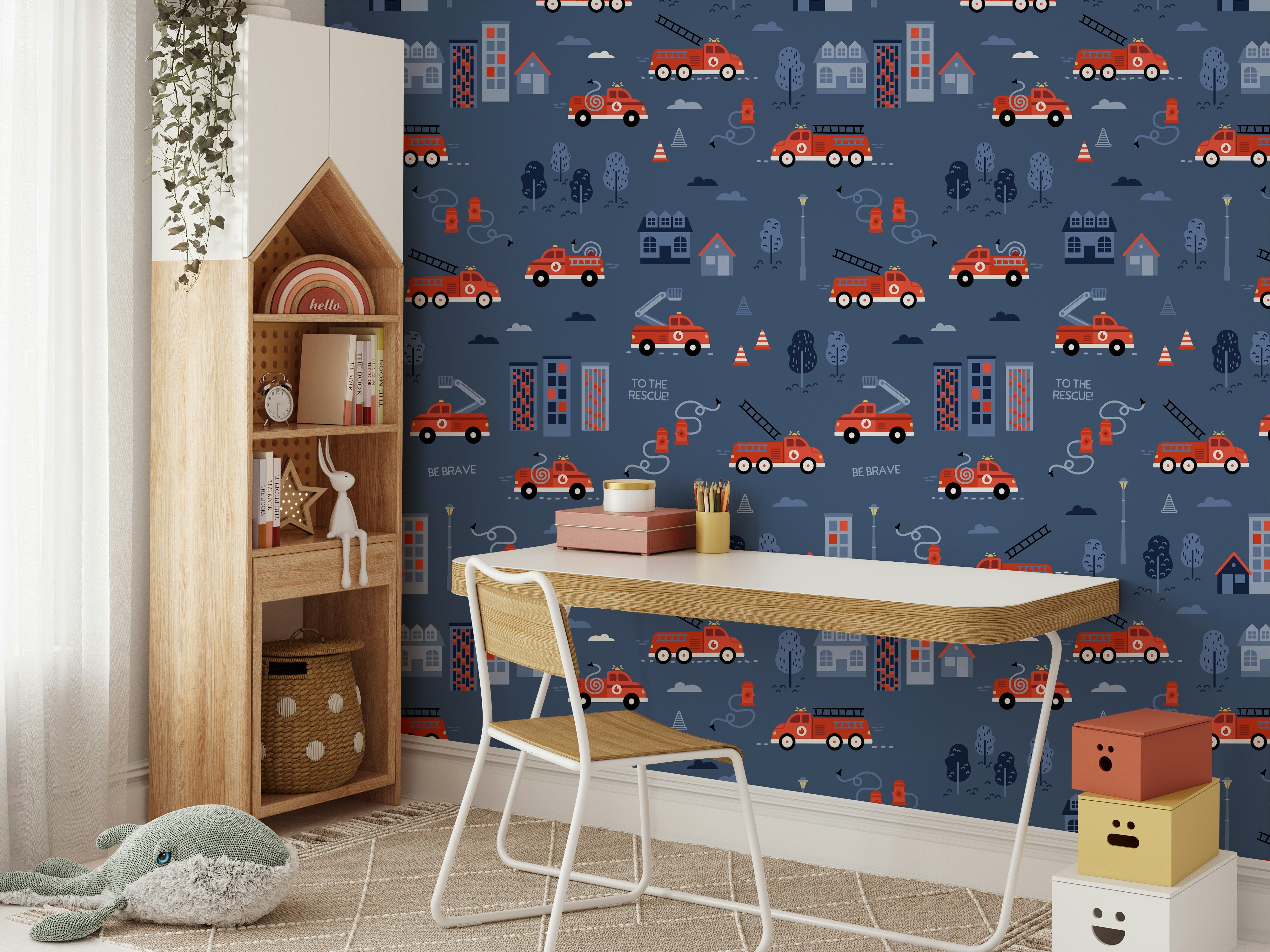 Add excitement to your child’s space with the To The Rescue Blue wallpaper. Set against a bold navy background, this lively design features red fire trucks, fire hydrants, ladders, and urban scenes that spark imagination. Ideal for playrooms, nurseries, or themed bedrooms, this wallpaper inspires bravery and adventure. The vibrant colours and playful elements make it a standout choice for little heroes. Easy to apply and remove, it offers a quick room refresh with personality and flair. Let your child’s imagination race to the rescue with this energetic and fun wallpaper choice!
