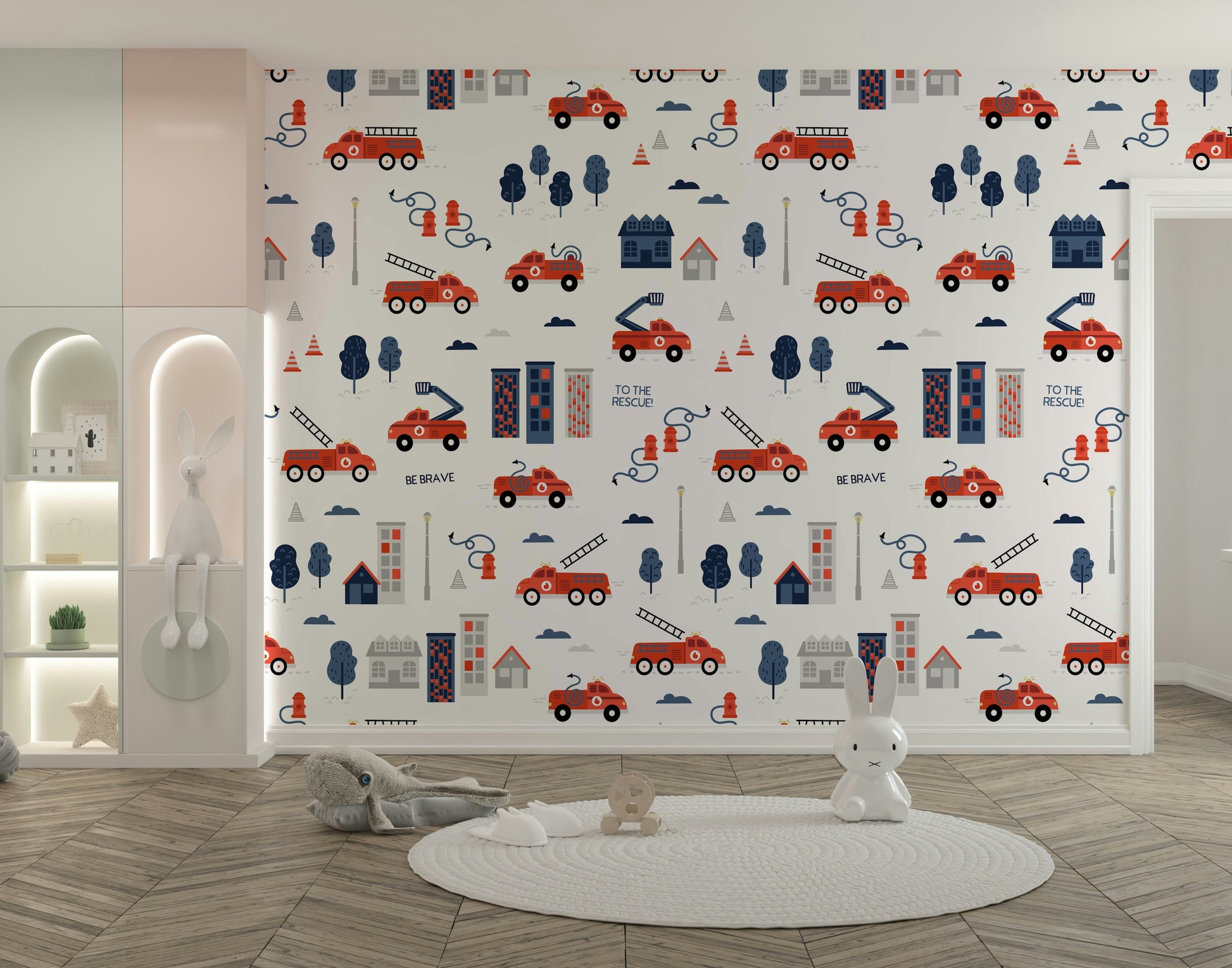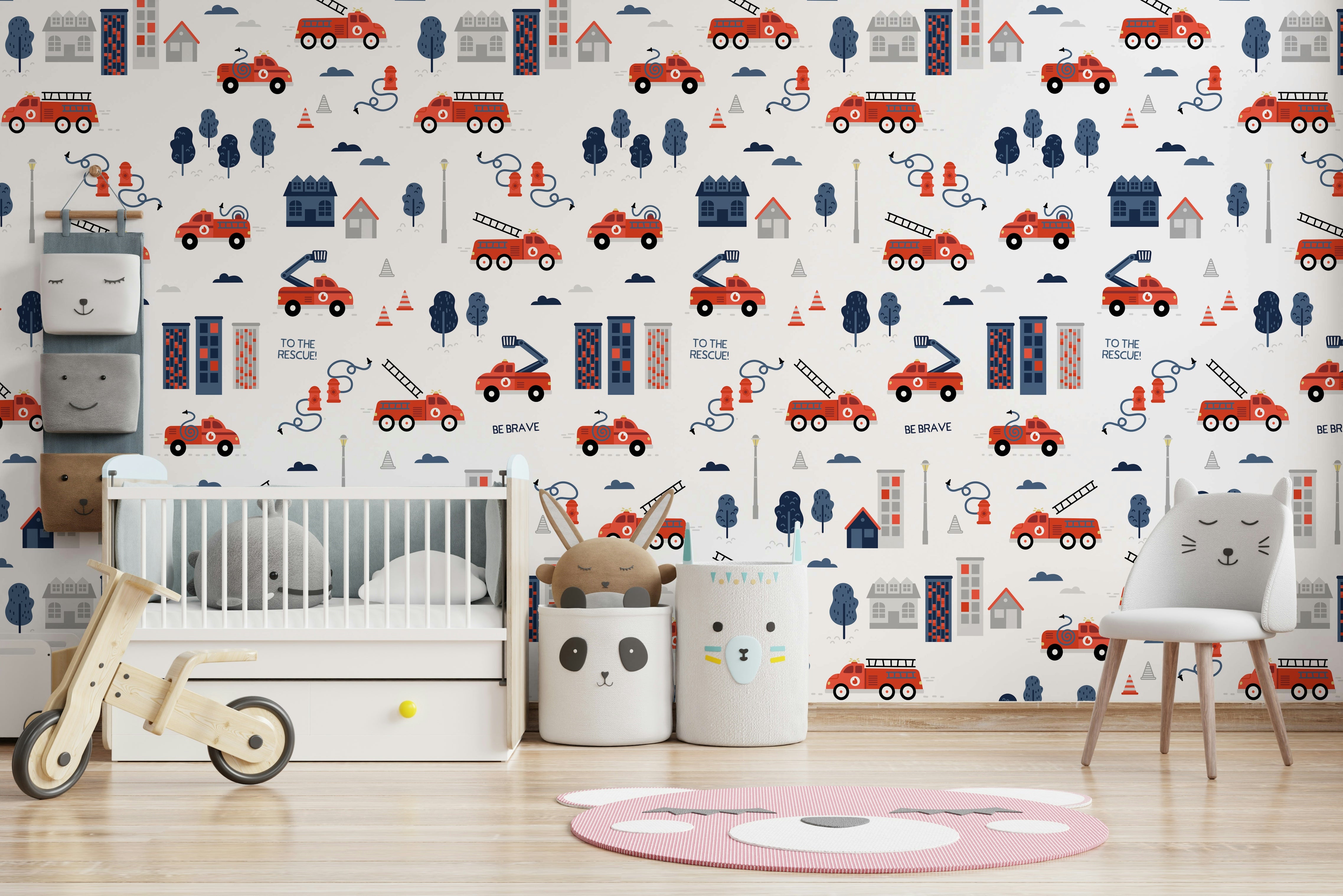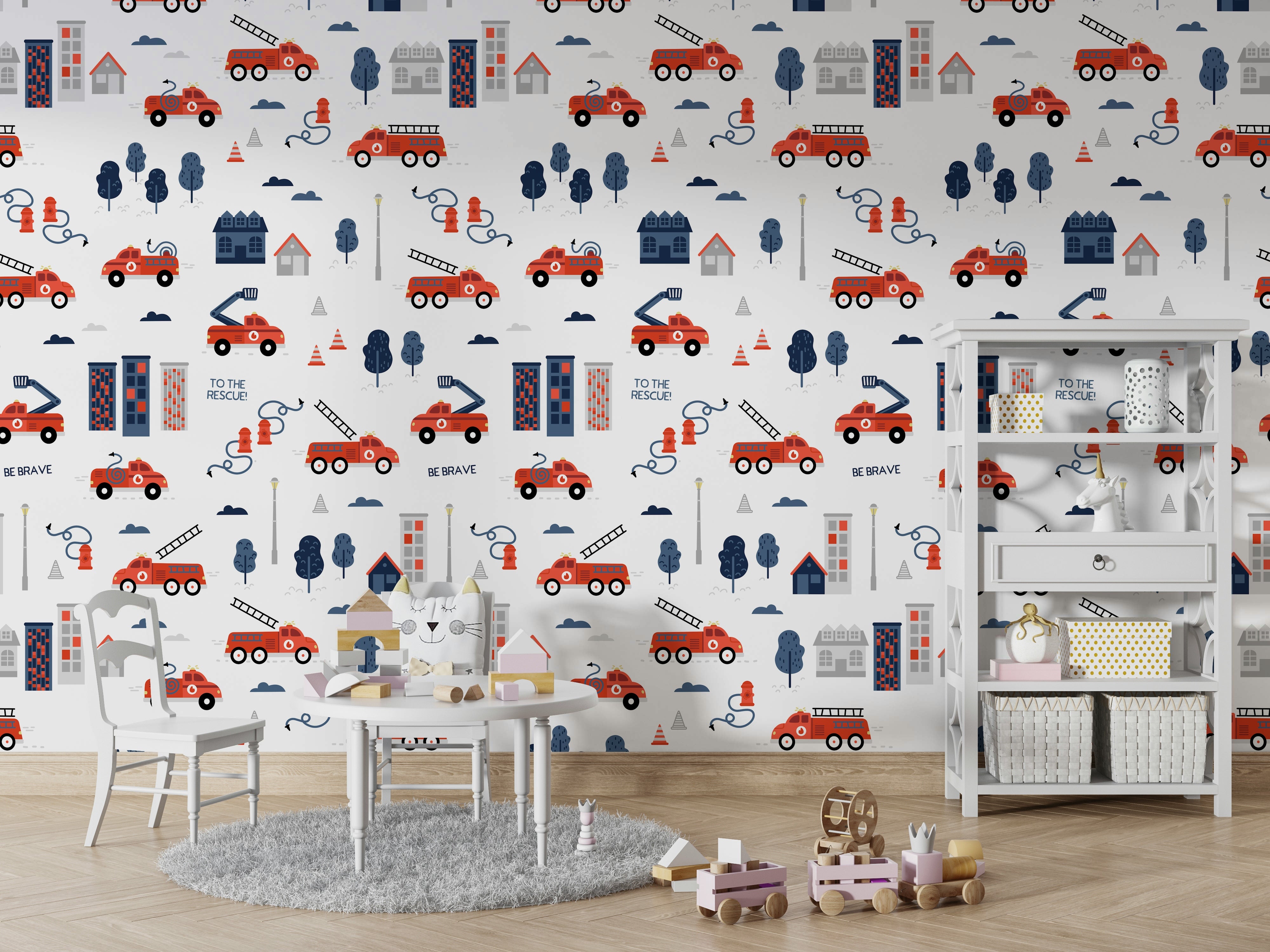 Add a spark of adventure to your child’s room with the To The Rescue Grey wallpaper. This playful design features bright red fire trucks, fire hydrants, ladders, and urban buildings against a soft grey backdrop perfect for inspiring little heroes. Ideal for nurseries, playrooms, or themed bedrooms, it brings energy and imagination to any space. The charming details and bold colors make it a fun yet stylish choice for kids who dream of being firefighters. Easy to apply and remove, this wallpaper is a great way to refresh a room with personality and purpose. Let the rescue missions begin!