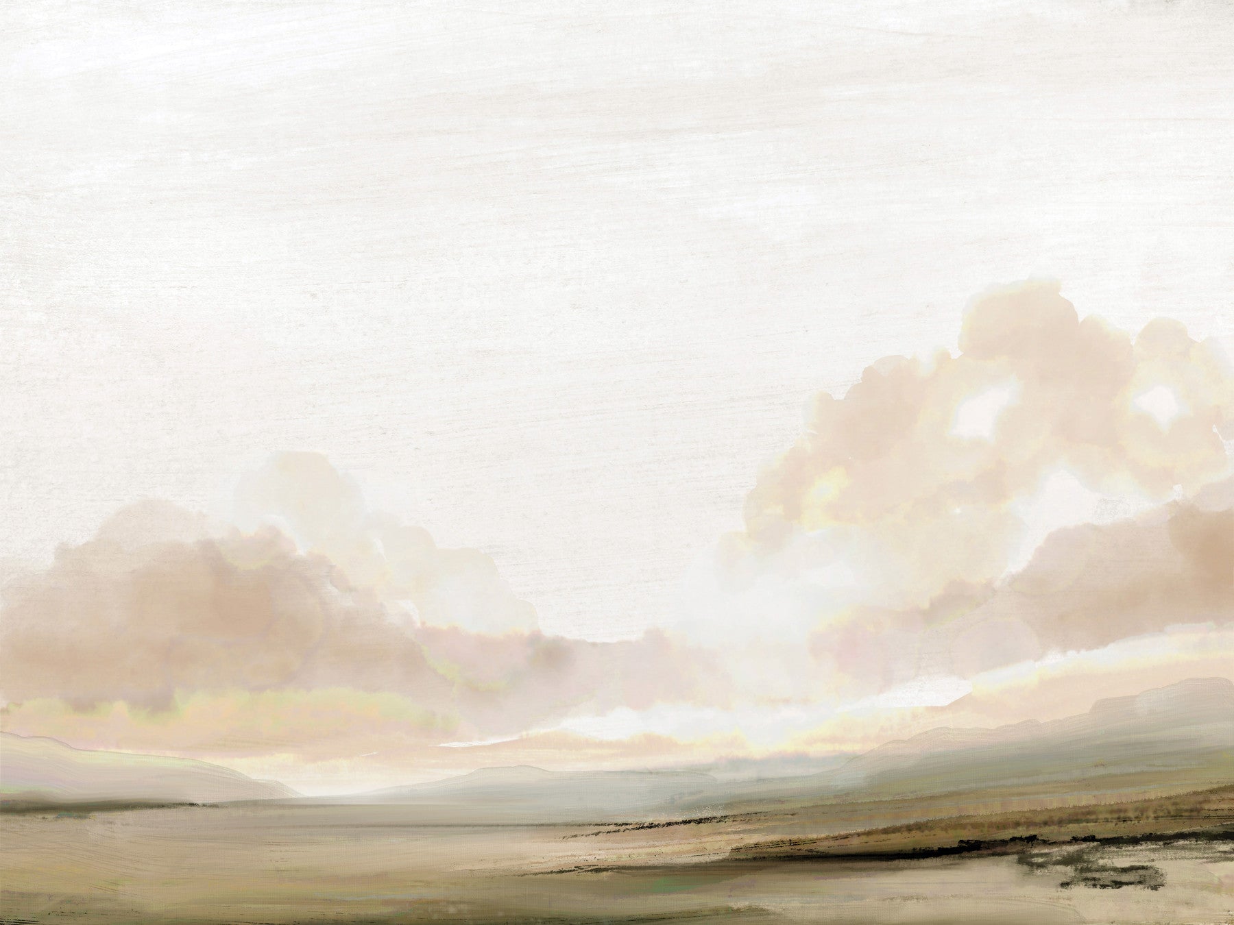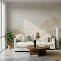 Bring a sense of calm into your home with this peaceful landscape. The design presents a soft, hand-painted feel with muted browns, greens and creams. Rolling hills meet a serene sky, creating a backdrop that evokes a sense of quiet escape. Use this wallpaper for walls to create a restful atmosphere in bedrooms or a soothing ambiance in living rooms. The neutral tones pair effortlessly with various décor styles, making it a versatile choice.
