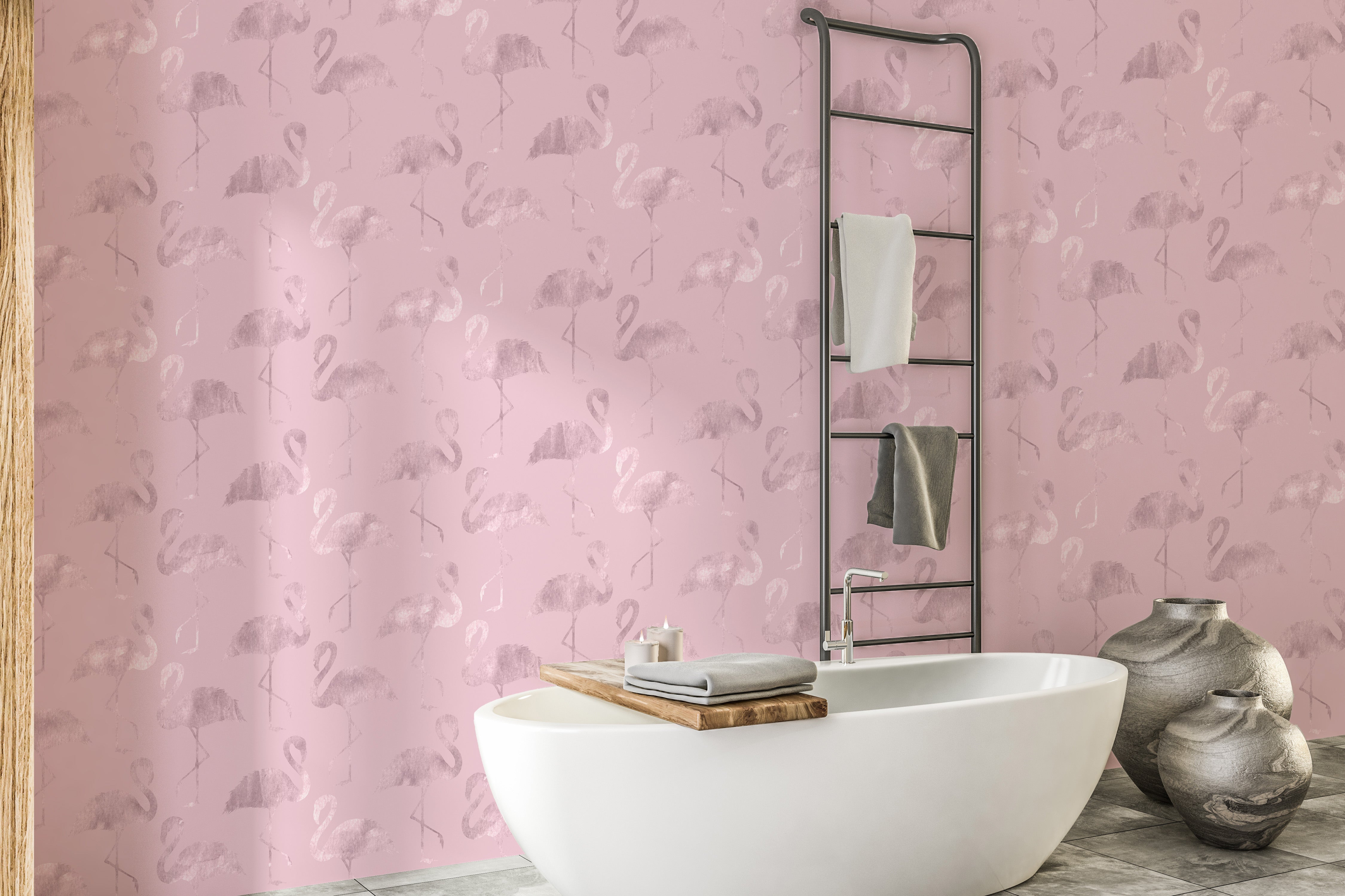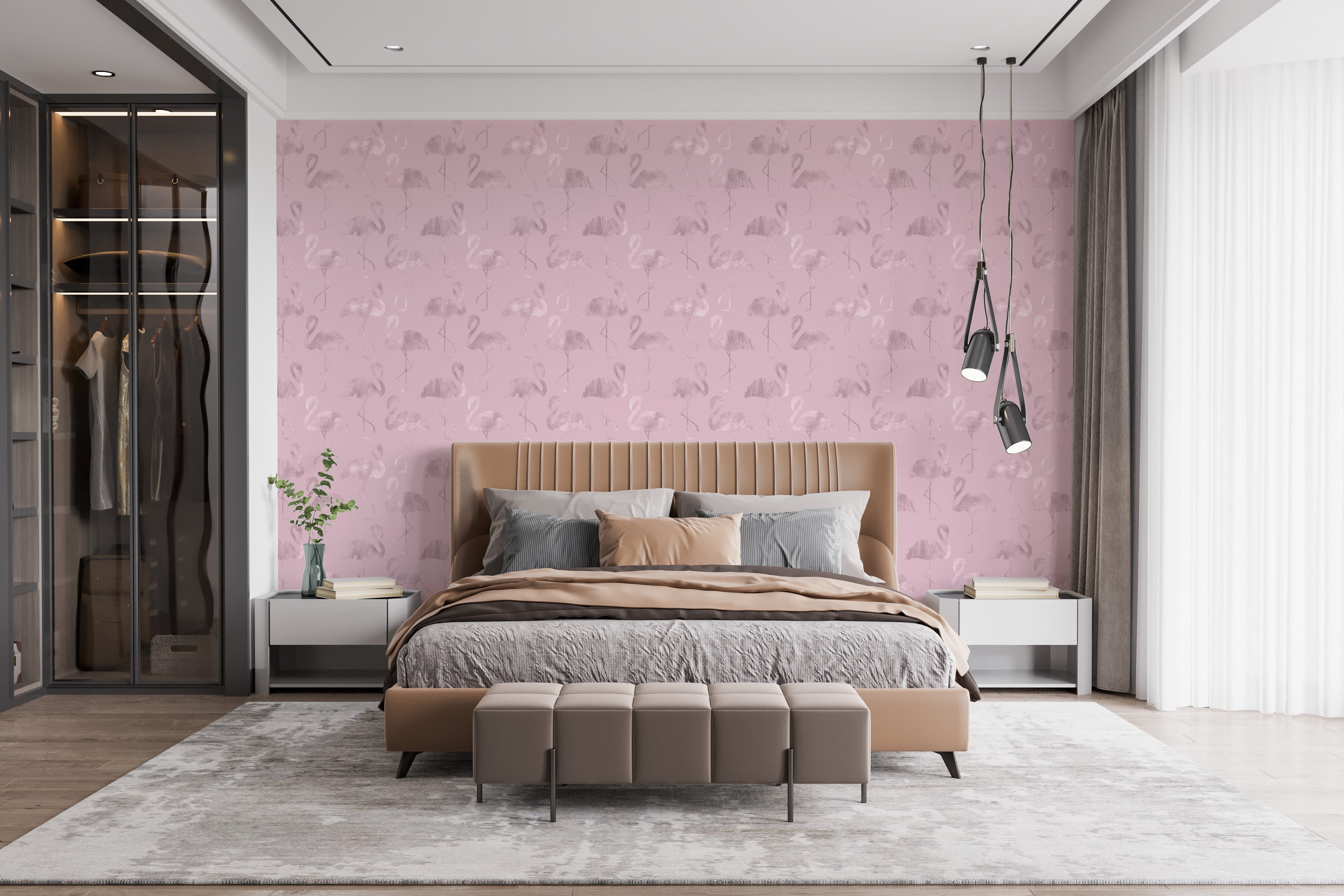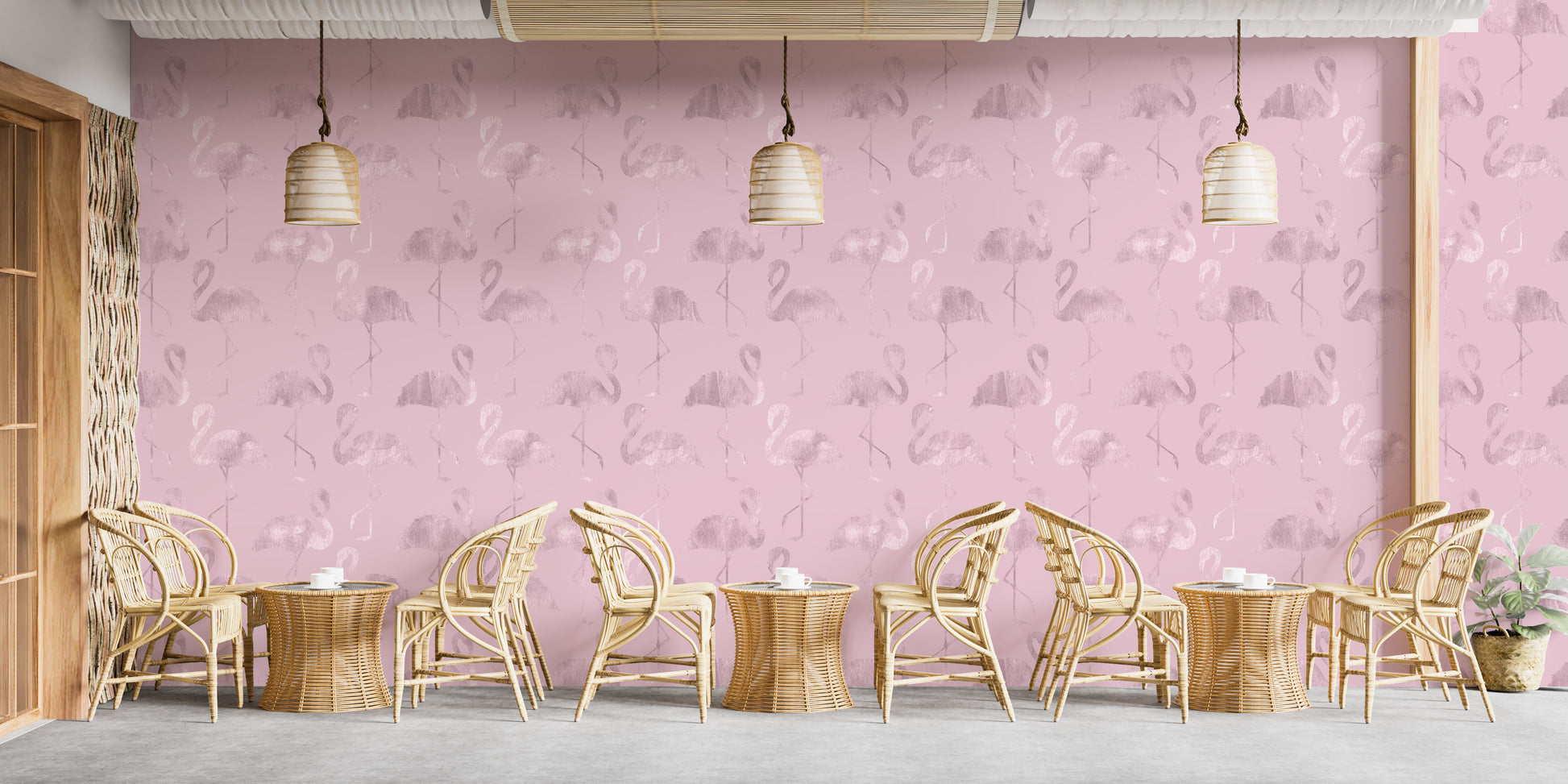 Dive into the mesmerizing world of the trendy pink shiny flamingo seamless wallpaper mural. This exquisite design, inspired by nature's most flamboyant bird, showcases an array of majestic flamingos poised gracefully against a luminescent backdrop. The dominant pink flamingo wallpaper theme radiates warmth and elegance, making any space come alive with vibrancy.