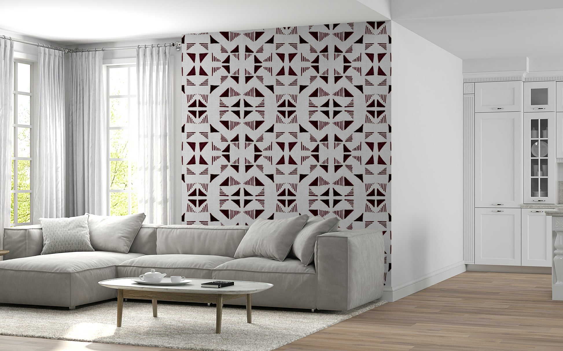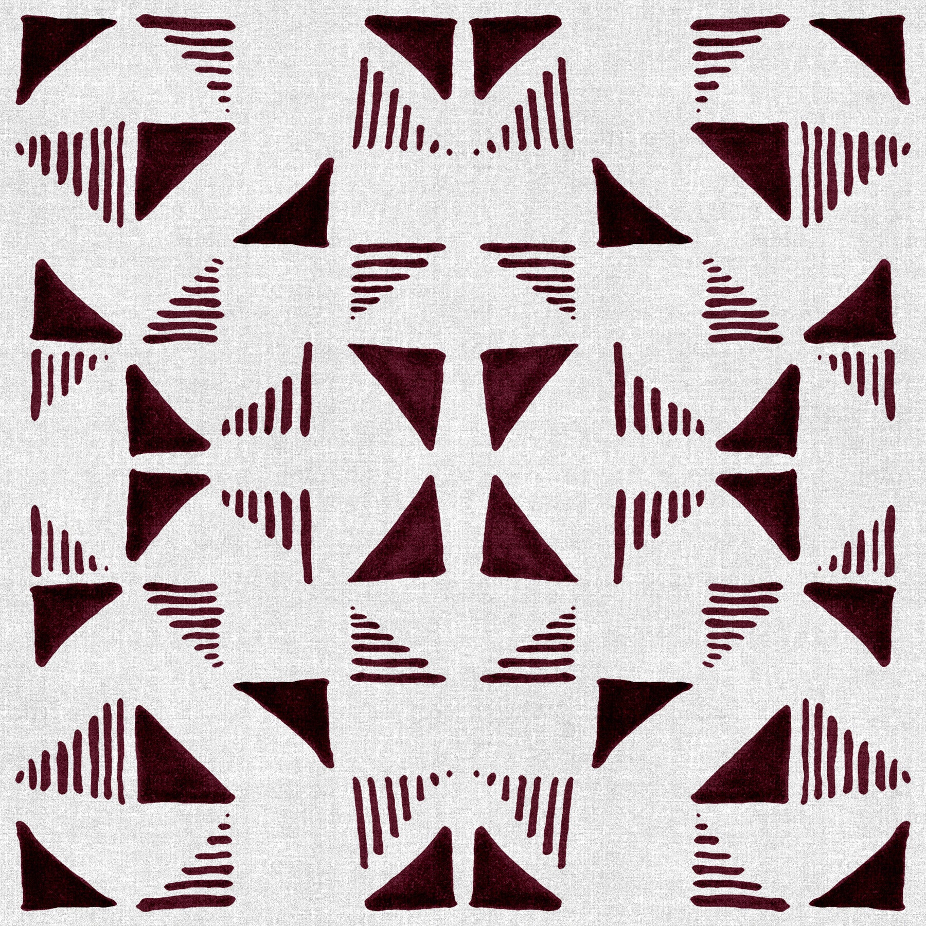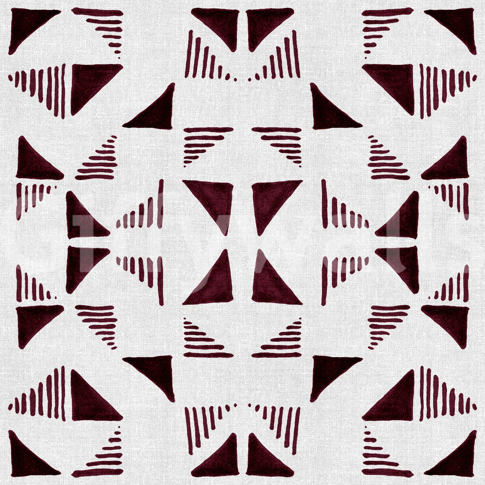 Immerse yourself in the understated elegance of 'Triangles Composition Burgundy,' a wallpaper that blends geometric precision with a touch of rustic charm. This design features a captivating arrangement of triangles rendered in a rich, inviting burgundy hue against a textured, off-white backdrop reminiscent of natural linen. The composition is balanced and thoughtfully arranged, creating a visually appealing pattern that's both modern and timeless. Accompanying each triangle are carefully placed lines and dashes of varying lengths, adding a dynamic and rhythmic feel to the overall design. The subtle variations in the burgundy tone lend depth and character, making this wallpaper a sophisticated choice for any space. 'Triangles Composition Burgundy' offers a subtle statement, perfect for adding a touch of warmth and geometric intrigue to your walls.