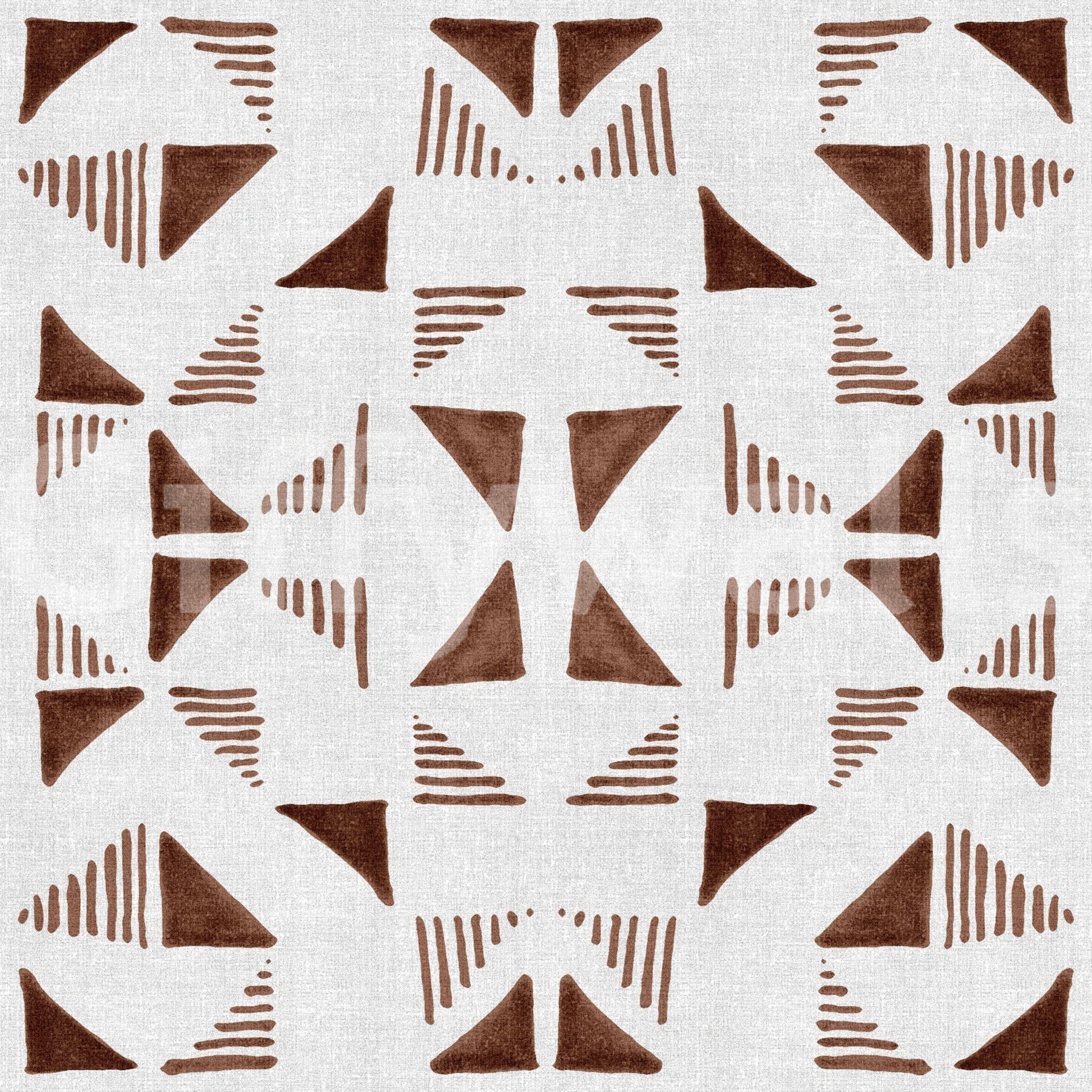 Abstract triangle pattern wallpaper in rich mocha hues for cozy, contemporary interiors.