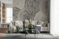 Immerse your space in the captivating "Tribal Rhythms" wall décor, a mesmerising exploration of primitive patterns and organic forms. This artful arrangement features concentric circles and radiating segments, reminiscent of ancient tribal markings and the rhythmic pulse of indigenous music. Hand-drawn imperfections add an authentic, textural quality, lending a sense of history and raw energy. The interplay between densely packed dots and bolder, linear strokes creates a dynamic visual tapestry, inviting the eye to dance across the wall. The neutral palette exudes understated elegance, allowing the intricate design to take centre stage. Perfect for adding a touch of global sophistication and timeless appeal to any room, the "Tribal Rhythms" design transforms your walls into a canvas of earthy beauty and rhythmic intrigue, echoing the stories and traditions of faraway lands.