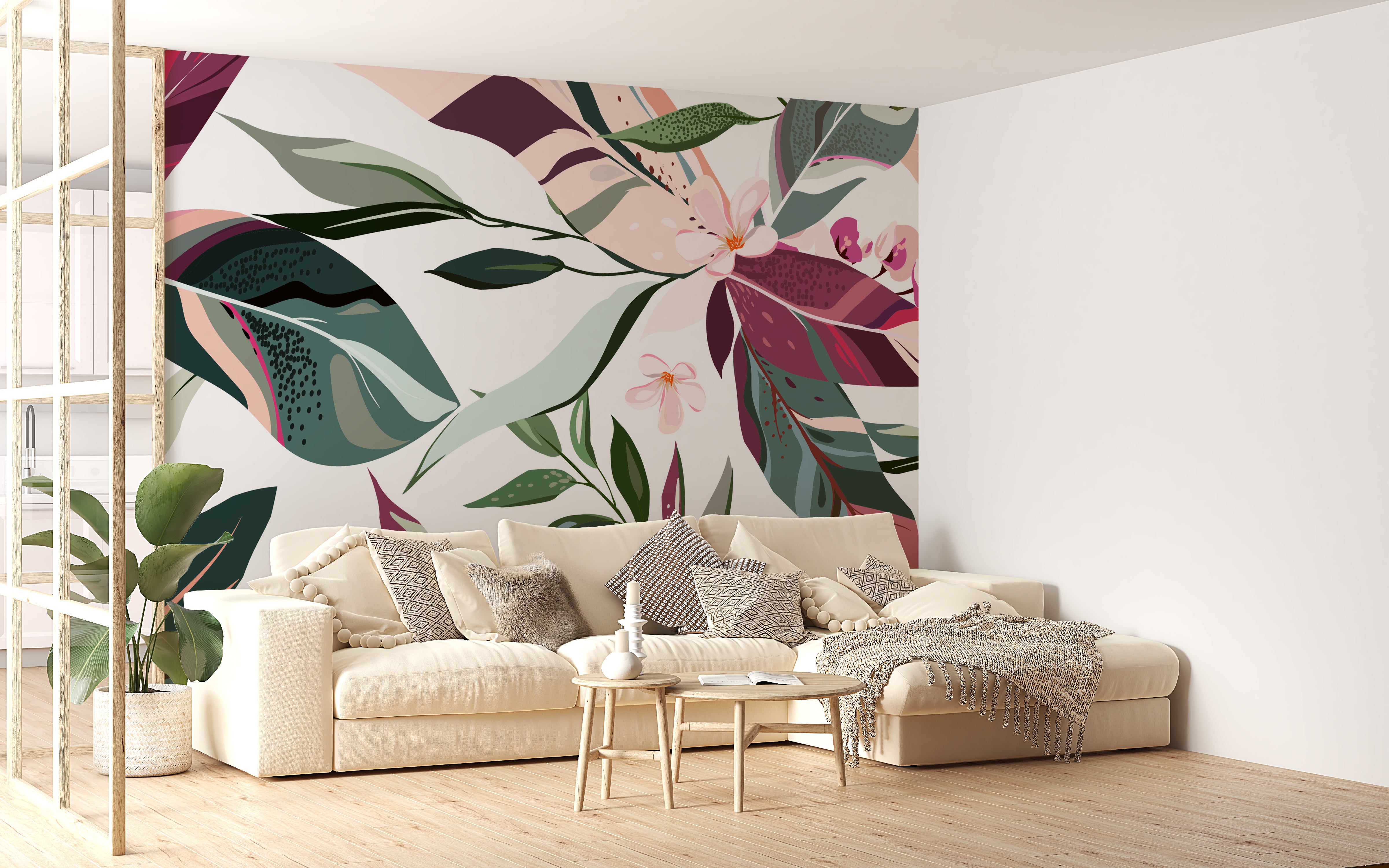 Hand-Painted Tropical Leaflets Wallpaper Mural
