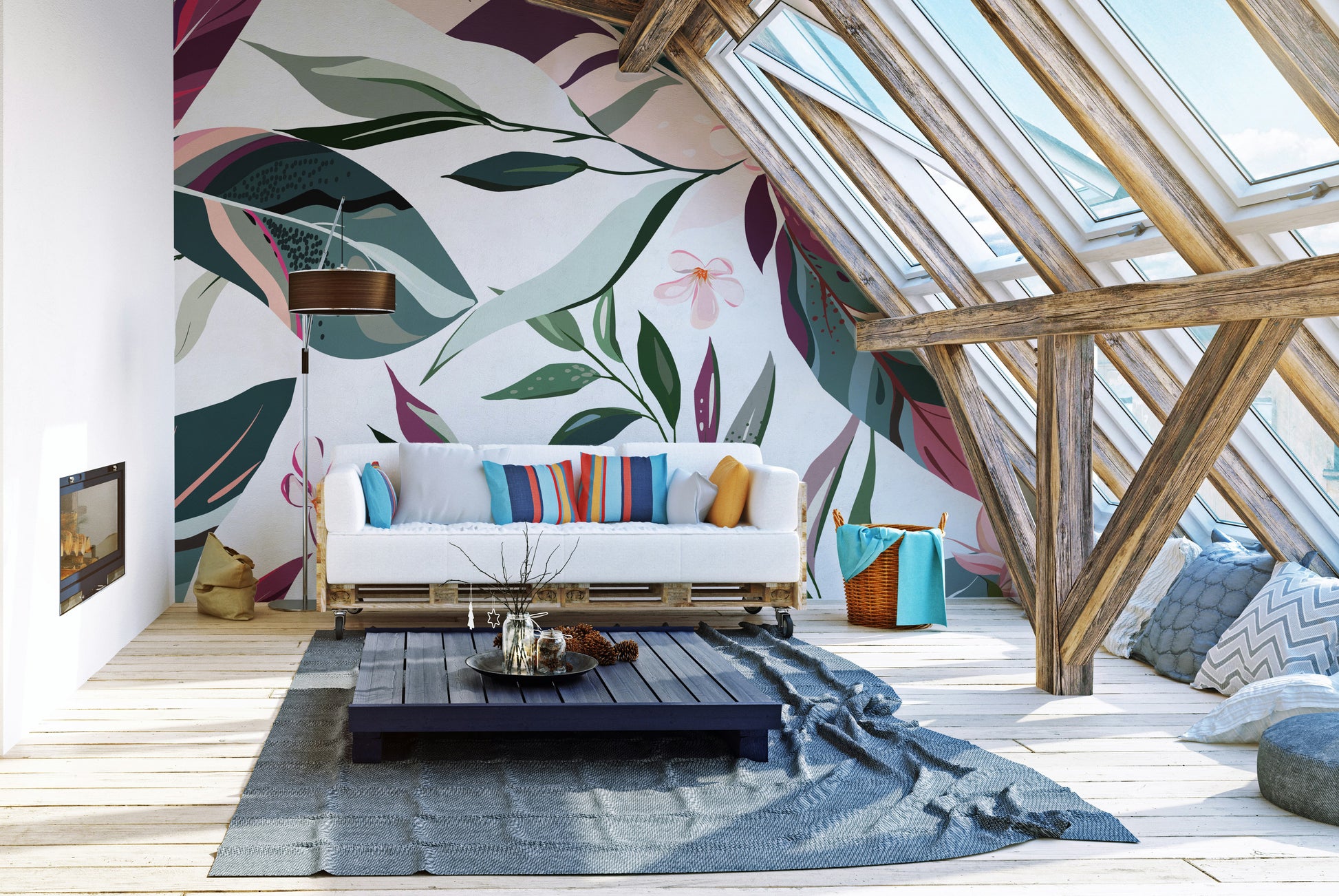 Lush Tropical Leaflets Wallpaper for Living rooms