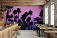 Invite a calming escape into your space with this stunning wallpaper for walls. Towering palm trees stand tall, showcasing a silhouette against a vibrant sky with shades of pink and purple. It brings a gentle outdoor feel indoors. This design enhances bedrooms with peaceful vibes, creates relaxing living rooms, or adds sophistication to an office. The tropical dusk scene nicely accompanies bohemian, modern, and even Scandinavian interior aesthetics.