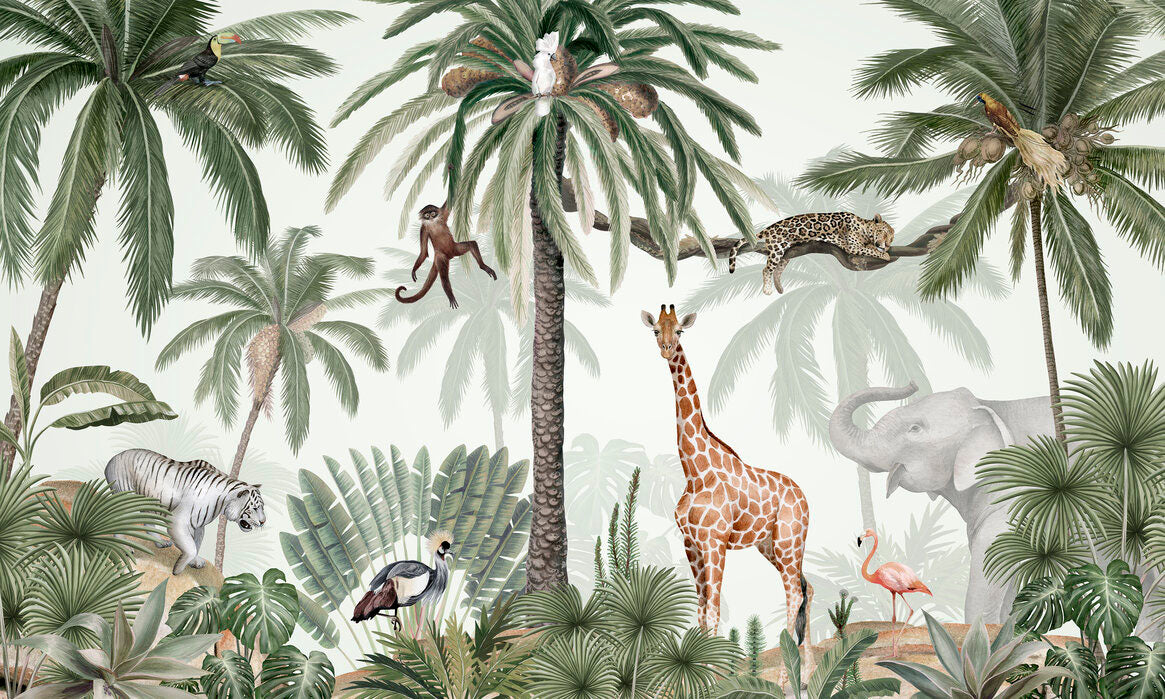 Exotic animals and palm trees in Tropical Jive wallpapeR