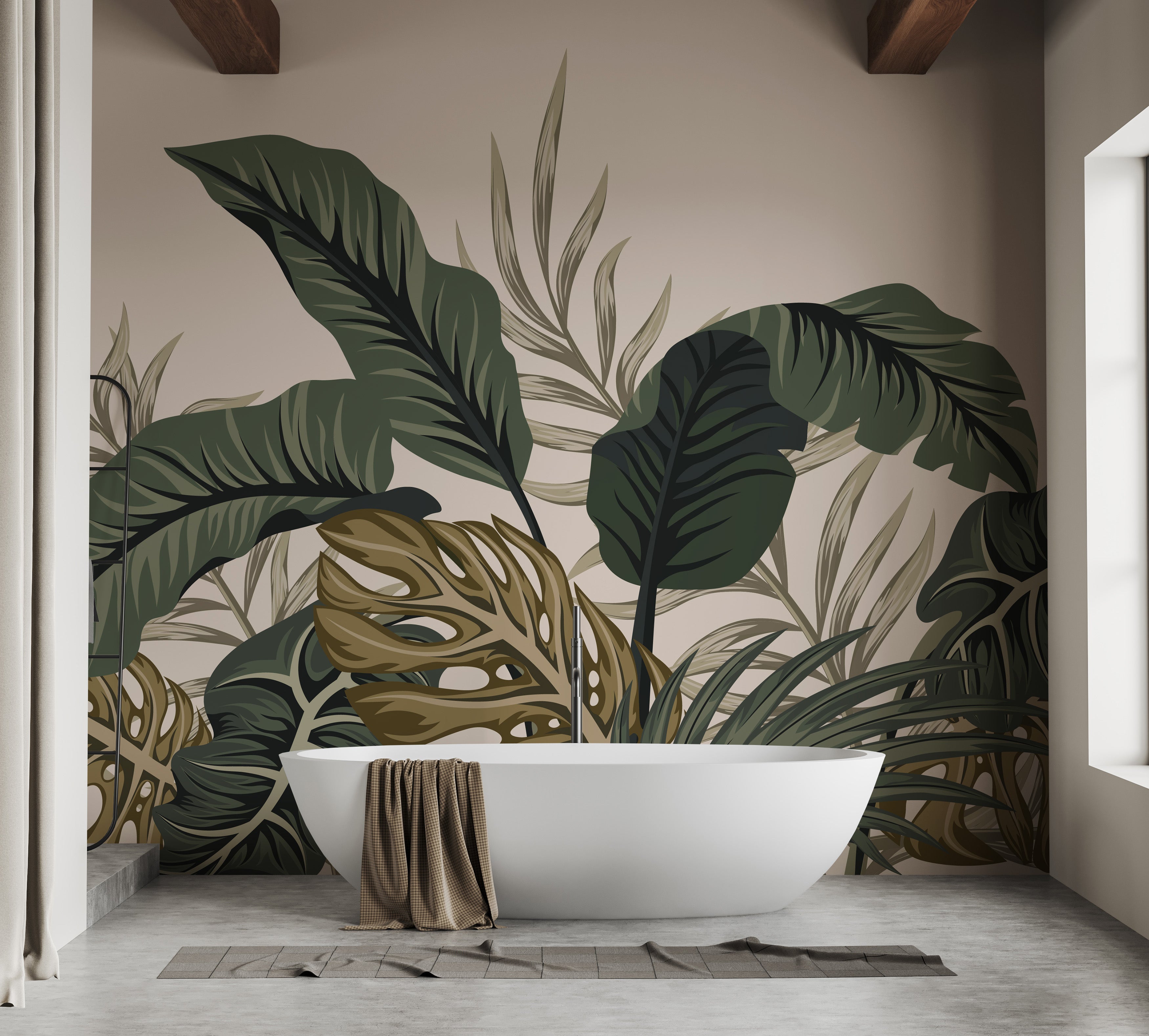 Tropical Leaves & Fern Design Wallpaper Mural - Giffywalls