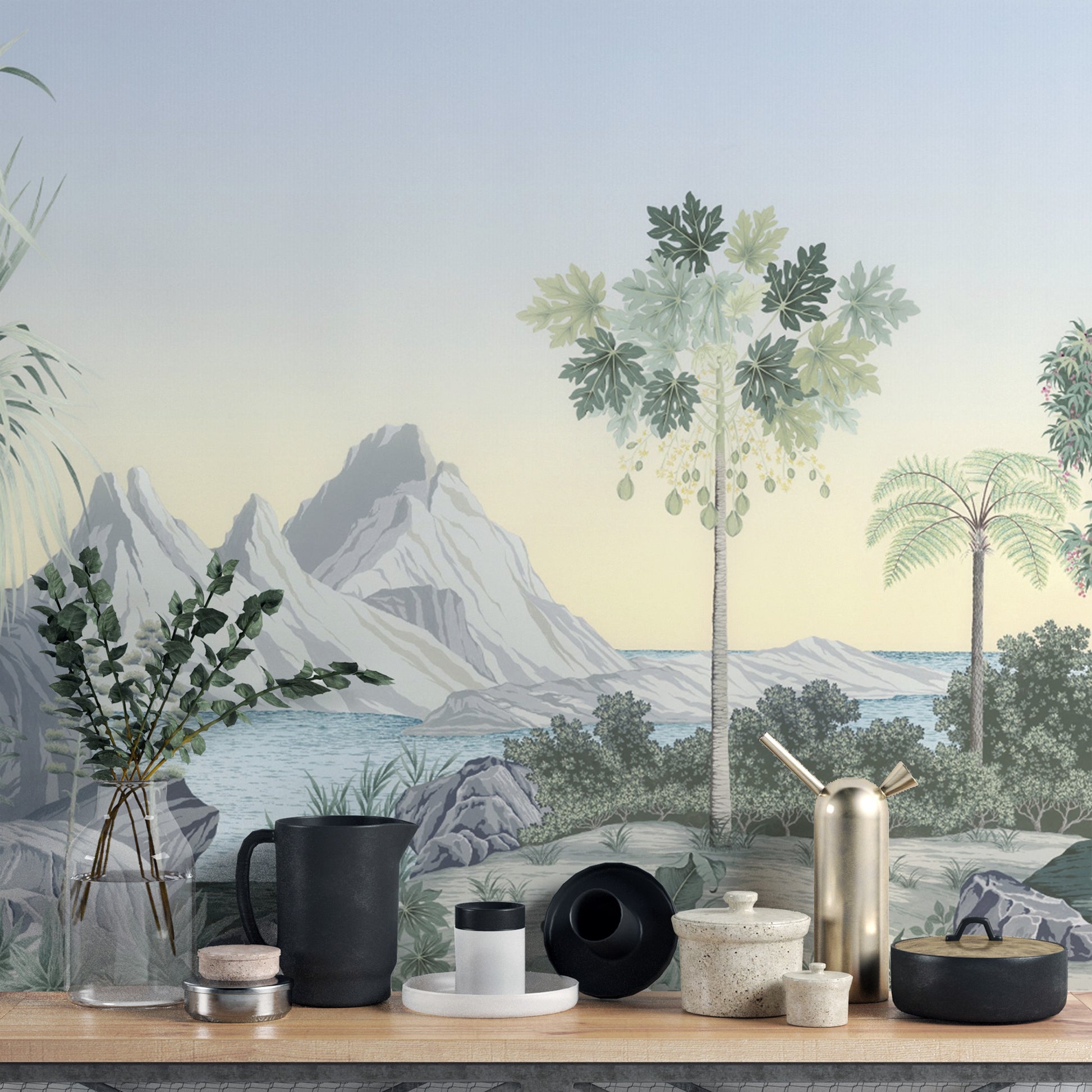 Turn your room into a tranquil vacation with the tropical paradise botanical wall mural. This tropical scenery wallpaper can insert rich greenery, exotic trees, and an awe-inspiring coastal scene into your house. Inspired by traditional botanical illustrations, it brings a sense of timelessness to any space. The soft, muted colours and acceptable specifications evoke a restful environment suitable for bedrooms, living rooms, or offices. This botanical wallpaper lends its nature-inspired beauty to interiors and delivers an integrated combination of tranquillity and sophistication. Elevate your décor effortlessly with this stunning mural, turning your walls into a paradise retreat. Easy to install and durable!