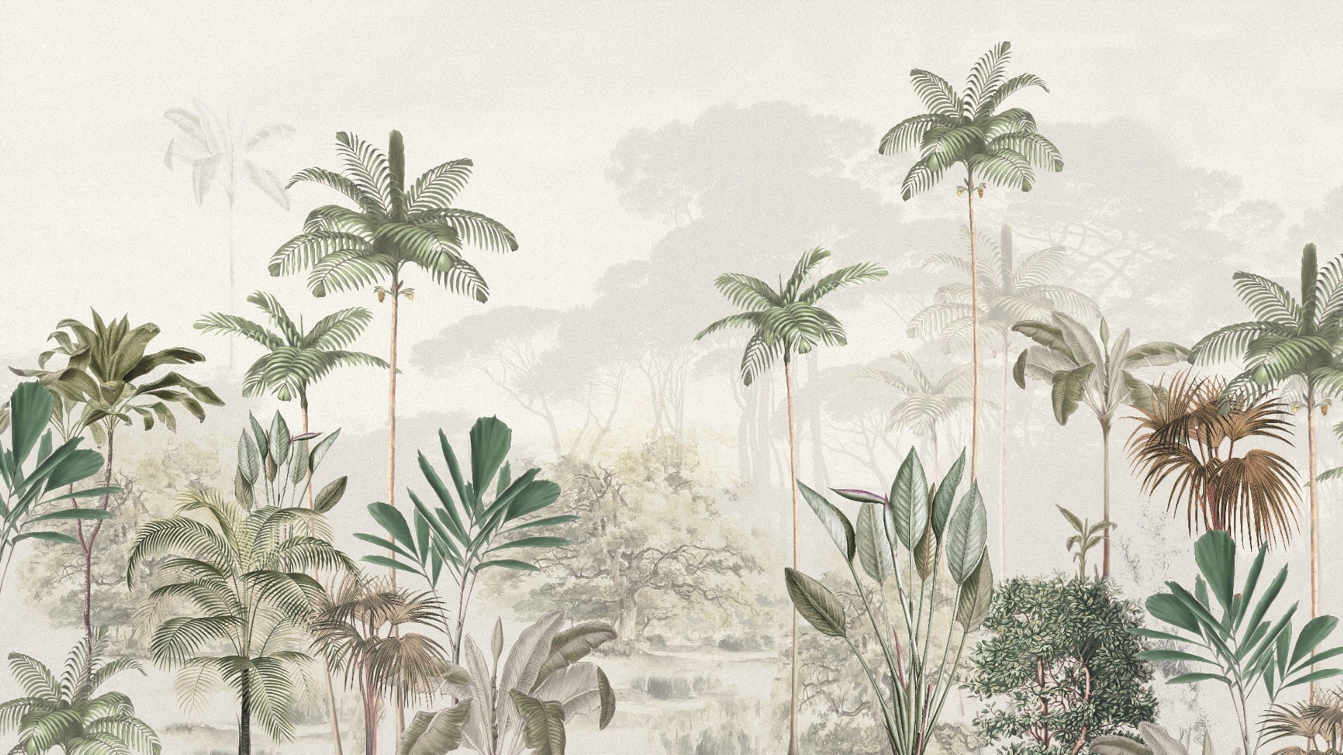 Tropical trees in soft white mural design