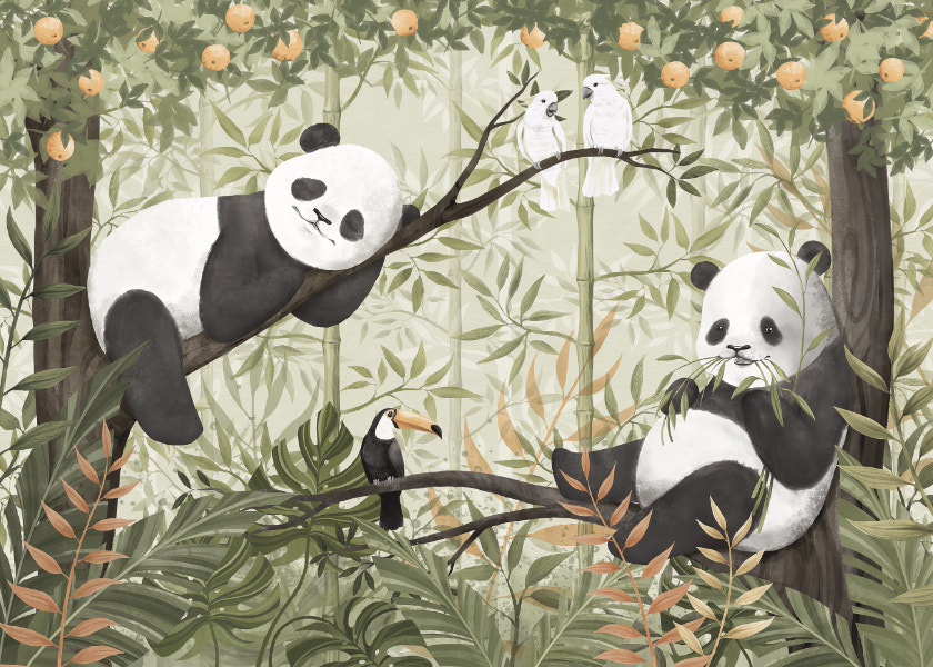 Immersive tropical wildlife wall mural for your space