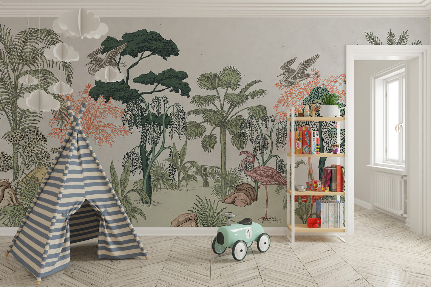 Tropical Wildlife Kids Wallpaper Mural - Giffywalls
