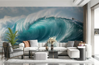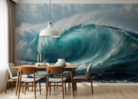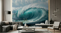 Infuse your interior spaces with the energy of the ocean using this immersive wallpaper for walls. This design features a colossal wave, displaying a spectrum of blues, with the turquoise depths forming its heart. White foam cascades down its face, highlighting raw oceanic power. Perfect for living rooms, bedrooms, or hallways, this design creates a dynamic and engaging statement. The blend of colour and powerful imagery enhances the interior, bringing a sense of nature’s majesty. Embrace the essence of the sea with a wallpaper that offers a fresh, bold perspective.