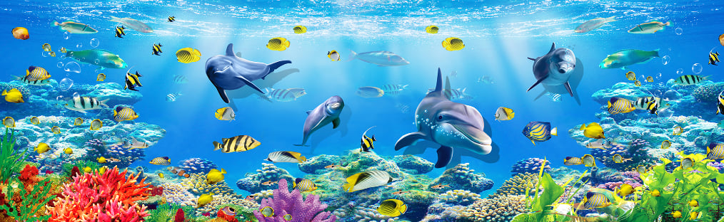 Underwater Sea Dophine Wall Wallpaper Mural - Giffywalls