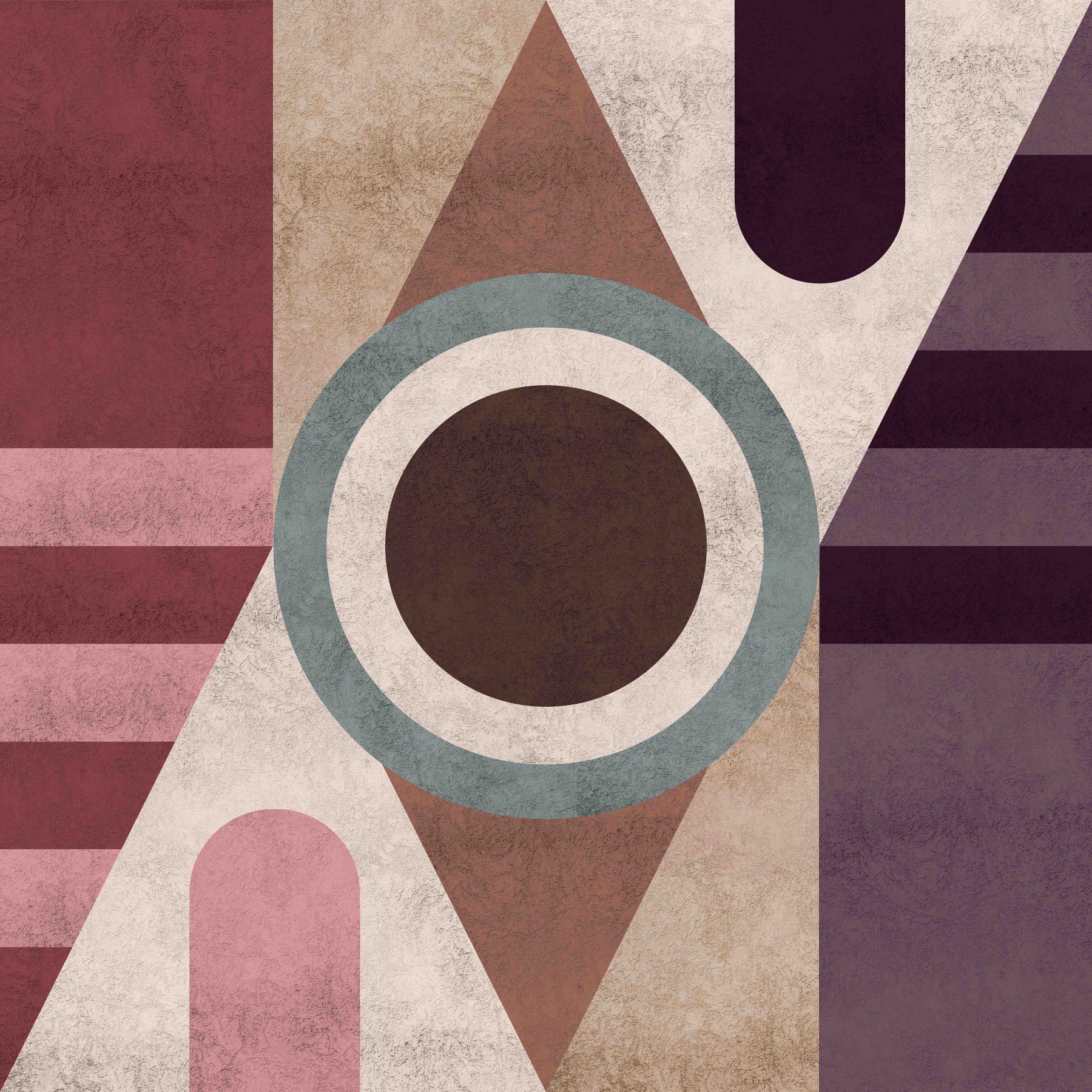 This wallpaper, titled "Urban Texture Geometric," captures the essence of city life through a lens of abstract design. Geometric shapes like circles, triangles, and rectangles interplay, rendered with a textured finish reminiscent of weathered urban surfaces. The color palette, featuring muted tones of mauve, beige, and a subtle teal, evokes a sense of understated sophistication and quiet harmony. The design combines the rigidity of structured forms with the organic feel of textural elements, mirroring the contrast and beauty found within the urban landscape, creating a visually captivating backdrop.