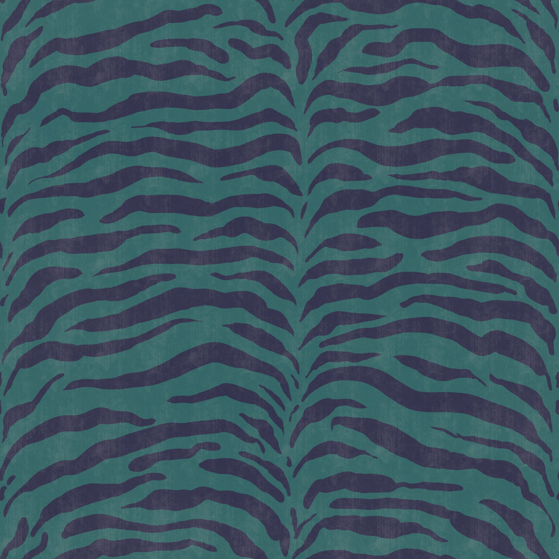 Embrace the wild side with this striking urban zebra design. The deep indigo stripes contrast against the serene teal background. It makes a great wallpaper for walls. This pattern brings a touch of edgy sophistication to any space. Imagine it in a modern hallway, teen's bedroom or study. The texture is soft and soothing, creating a calming environment. It works nicely with minimalist furniture and metal accents, bringing together an urban vibe with nature's beauty.