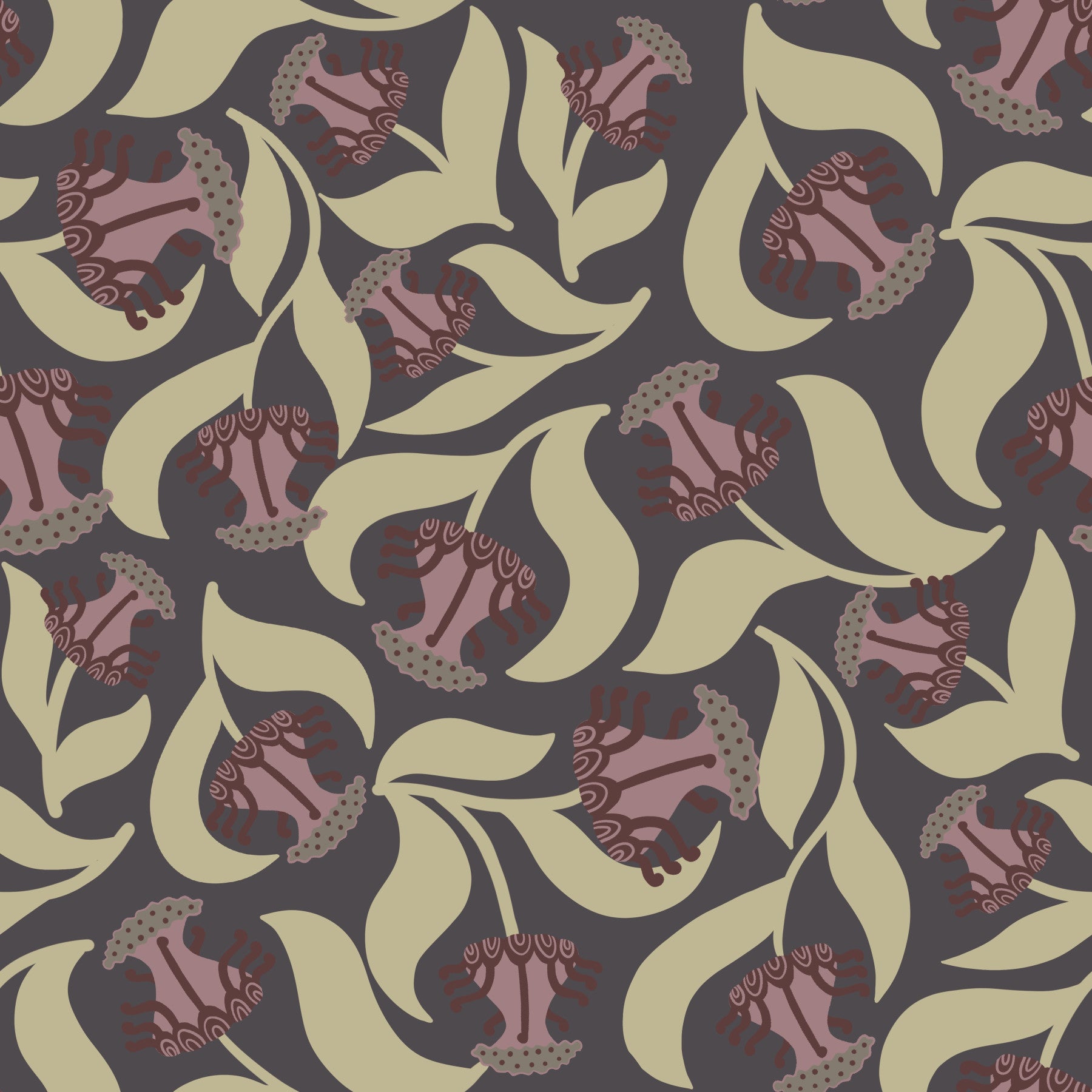 Step back in time with Velora - Vintage Flora a wallpaper that whispers tales of bygone eras. This design reimagines classic floral patterns with a unique, artistic twist. Subdued hues of mauve and muted sage mingle against a charcoal backdrop, creating an ambiance of understated elegance. The stylized flowers, reminiscent of antique textiles, offer a sense of nostalgic charm, while the bold, simplified leaf shapes add a touch of modern sophistication. "Velora - Vintage Flora" is perfect for those seeking a subtle yet captivating design that blends vintage allure with contemporary sensibilities. Adorn your space with this timeless piece and evoke a feeling of refined serenity.