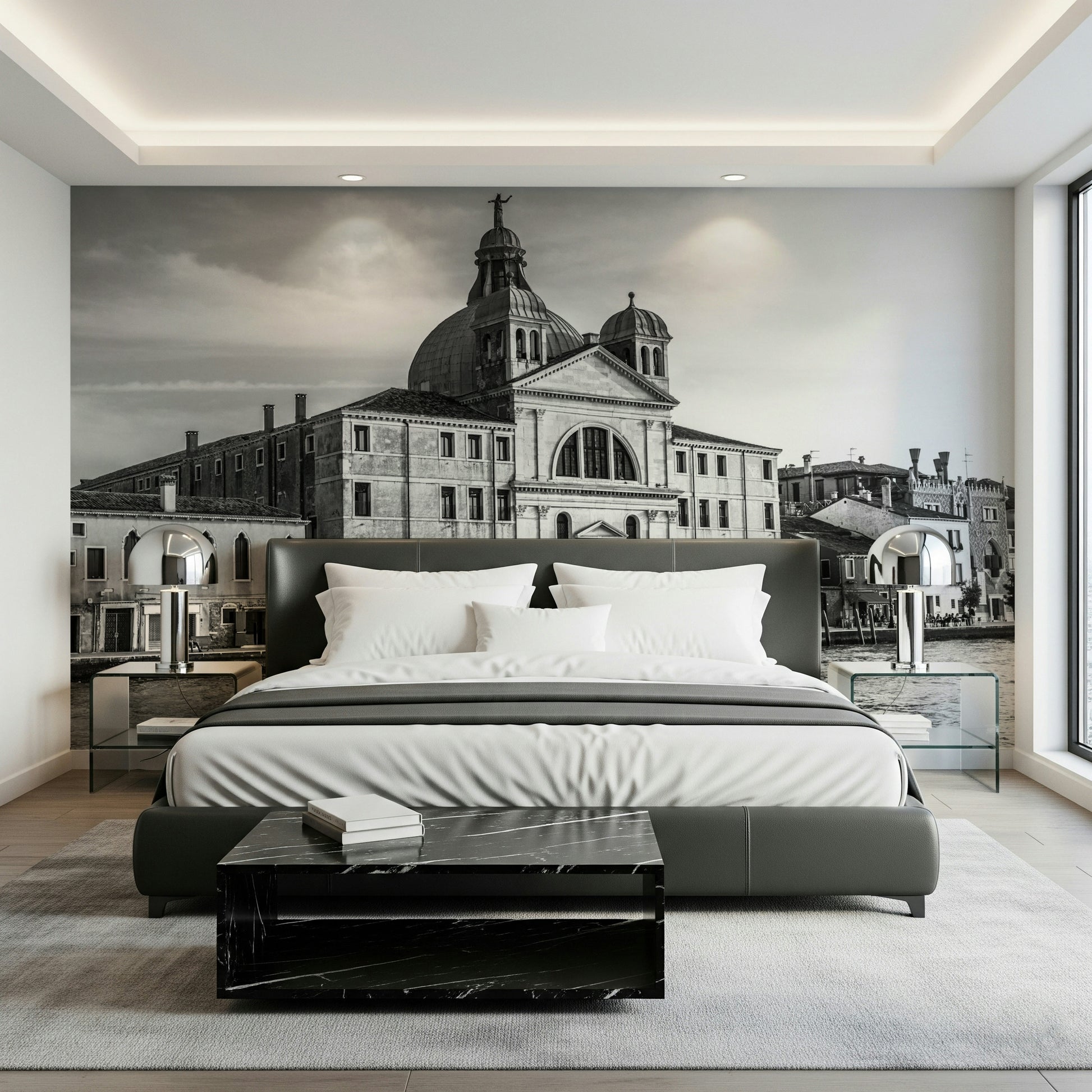 Cityscape of Venice from the Grand Canal, Italy. Evoke the timeless beauty of Venice with this captivating cityscape art piece. The monochrome palette adds a layer of sophistication and elegance, highlighting the stunning architectural details of this historic Italian city. Imagine being transported to the serene canals, as reflected in the shimmering waters captured in exquisite detail. The grand buildings, with their intricate facades and imposing domes, tell a story of a rich and cultured past. The play of light and shadow enhances the depth and texture, creating a visually striking statement for any room. This artwork will transform your space into a haven of tranquility and artistic appreciation, inviting you to lose yourself in the romantic allure of Venice.