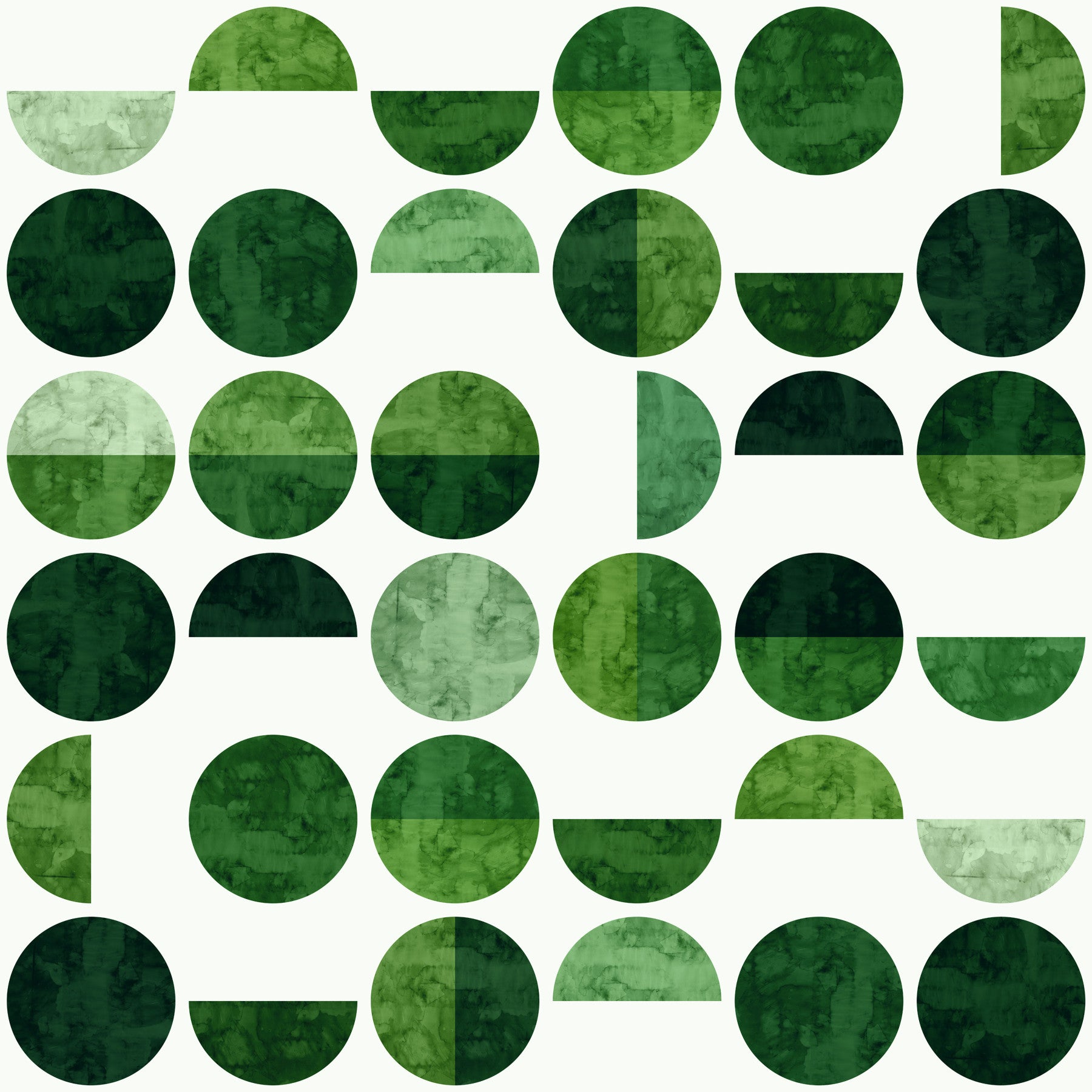 Embrace the calming allure of nature with this circular motif wallpaper. The varying shades of green create a dynamic yet soothing visual experience. The watercolour texture adds depth and interest to the geometric design. This wallpaper for walls works well in living rooms, bedrooms, or even a home office, bringing a sense of tranquility and organic charm. Its simple yet sophisticated pattern is perfectly for a minimalist or Scandinavian-inspired interior.