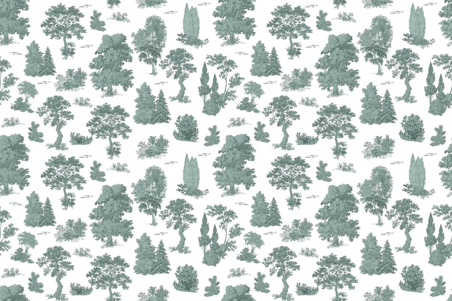 Embrace tranquil elegance with this forest-inspired wallpaper. Delicate tree designs, rendered in a muted green, bring a sense of calm to your space. The repeating pattern captures the beauty of a lush grove. This wallpaper for walls works wonderfully in bedrooms to create a relaxing retreat. Its understated charm suits living rooms and dining areas, adding a touch of natural sophistication. It merges seamlessly with both vintage decor styles and fresh, contemporary designs.