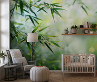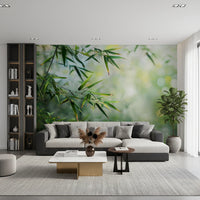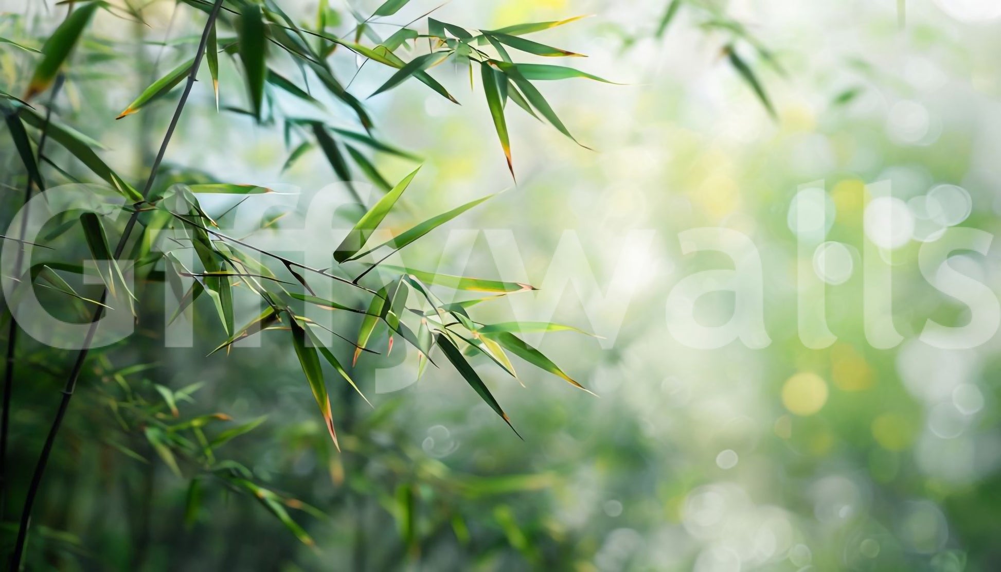 Infuse your interior design with a soothing touch using this captivating wallpaper for walls. The design showcases graceful bamboo branches adorned with lush, green leaves, set against a gently diffused, light-filled backdrop. This subtle yet stunning design adds an element of sophisticated calm to your home. The delicate interplay of light and shadow on the leaves brings depth and visual interest, easily enhancing any room's ambiance. Ideal for bedrooms, hallways, or even a home office, this wallpaper creates a peaceful atmosphere. It serves as a perfect backdrop to your furniture and décor, making the design an effortless addition to any interior.