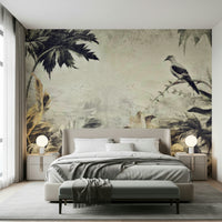 Invite nature's charm into your home with this captivating wallpaper for walls. The design features a serene bird perched amid lush foliage, rendered in a vintage, brushstroke style. Soft beige, grey, and gold hues create a tranquil atmosphere. It complements living rooms, bedrooms, or hallways, adding a touch of sophistication and calm to your interiors. The artistic details and muted colours blend effortlessly with various decorating schemes, making it a beautiful and versatile backdrop.