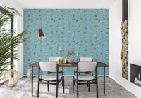Evoke a sense of timeless beauty with "Vintage Birds and Morning Glories". This exquisite wall covering features delicate morning glories in soft pastel hues, intertwining with gracefully perched and soaring vintage-style birds. The overall effect is one of serene elegance, reminiscent of classic botanical prints. The design captures the quiet charm of a bygone era, creating a soothing and sophisticated ambiance in any room. Invite the tranquil beauty of nature into your home with this captivating display of artistry, perfect for creating a relaxing and stylish sanctuary.