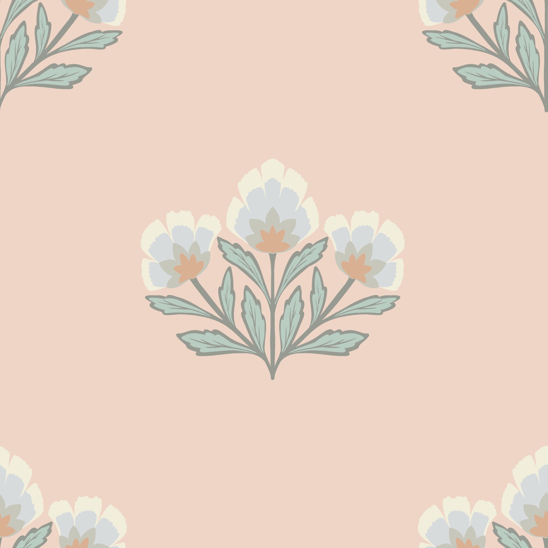 Soft peach background wallpaper featuring classic art deco flowers.