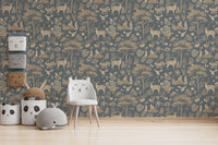 Step into a classic woodland setting with this vintage blue wildlife wallpaper. The intricate pattern wallpaper showcases elegant deer, lush trees, and delicate flora in a muted sepia tone against a rich blue backdrop. The hand-drawn details evoke a nostalgic charm, making it an excellent choice for those who appreciate timeless aesthetics. Perfect for living rooms, bedrooms, or study spaces, this wallpaper blends well with vintage decor and traditional furnishings. The soothing blue hue creates a sense of calm, while the wildlife theme adds depth and character. Whether you’re looking to craft a cozy retreat or an artistic statement wall, this wallpaper offers a sophisticated touch with nature-inspired beauty.