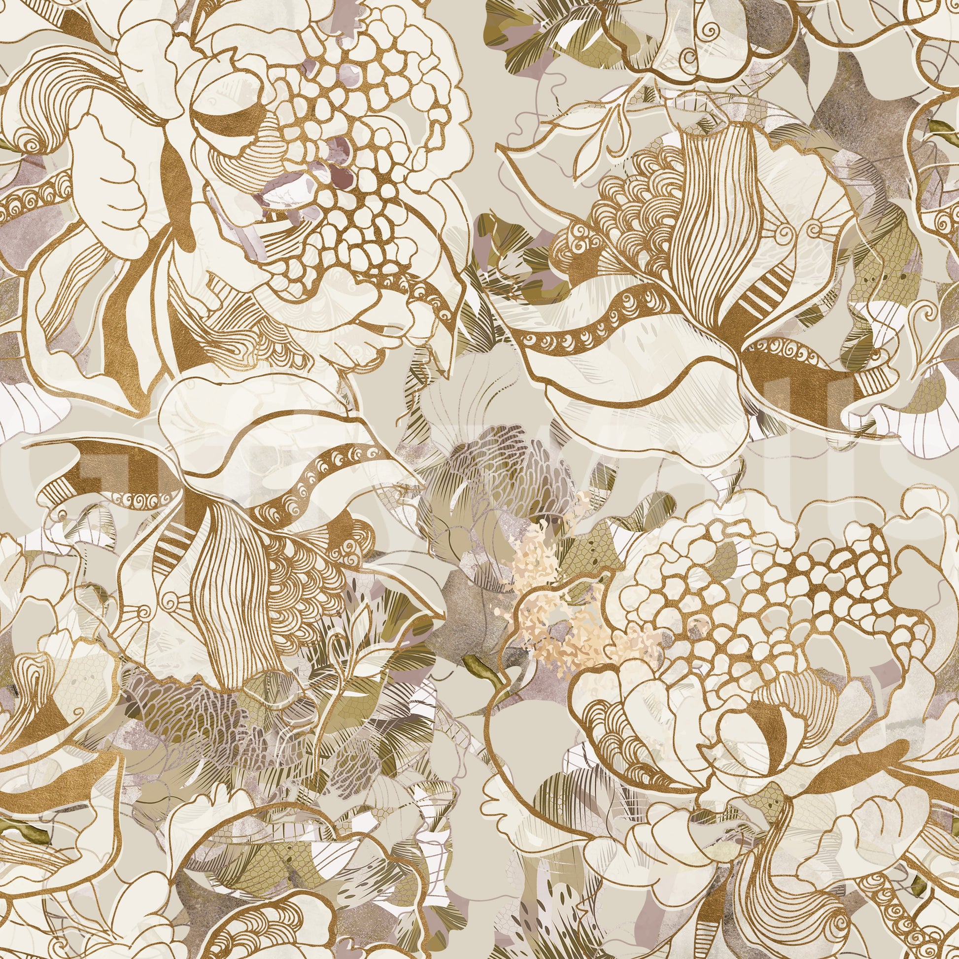 Envelop your walls in the timeless elegance of our Vintage Cream Floral design. This exquisite pattern transforms any room into a sanctuary of sophisticated charm. Delicate, oversized abstract florals bloom across a serene backdrop of warm cream and soft beige tones. Each petal is artfully rendered with shimmering gold accents, creating a luxurious depth and captivating play of light. Intricate etched details and subtle textures add a handcrafted feel, reminiscent of cherished antique tapestries. This design offers a harmonious blend of classic romance and modern artistry, perfect for infusing your living area, bedroom, or dining space with a calming yet opulent atmosphere. The gentle palette ensures versatility, while the golden flourishes provide a touch of refined grandeur. Experience the serene beauty and lasting appeal of this truly unique botanical statement for your interior.