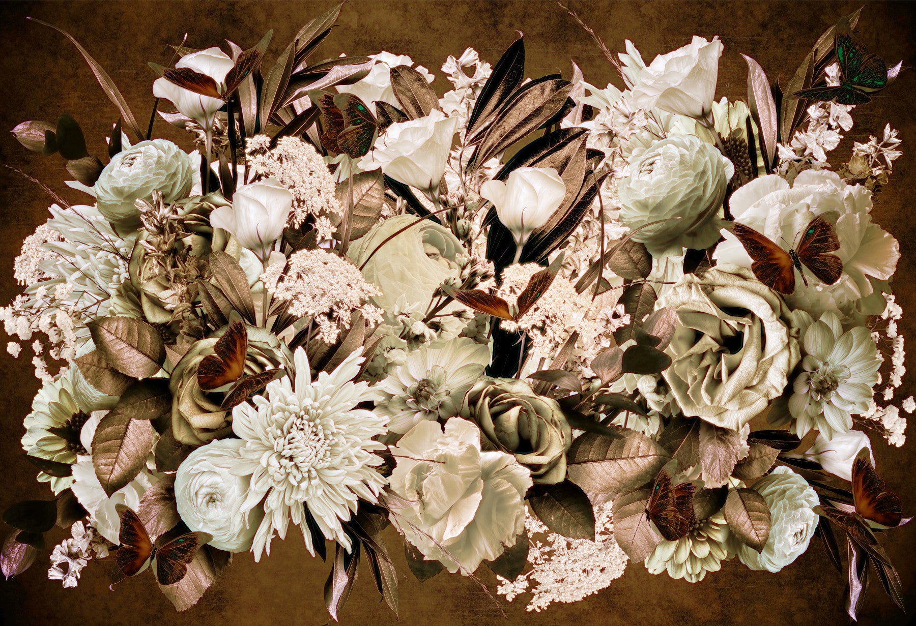 A contemplative floral pattern wallpaper mural for a feature wall.