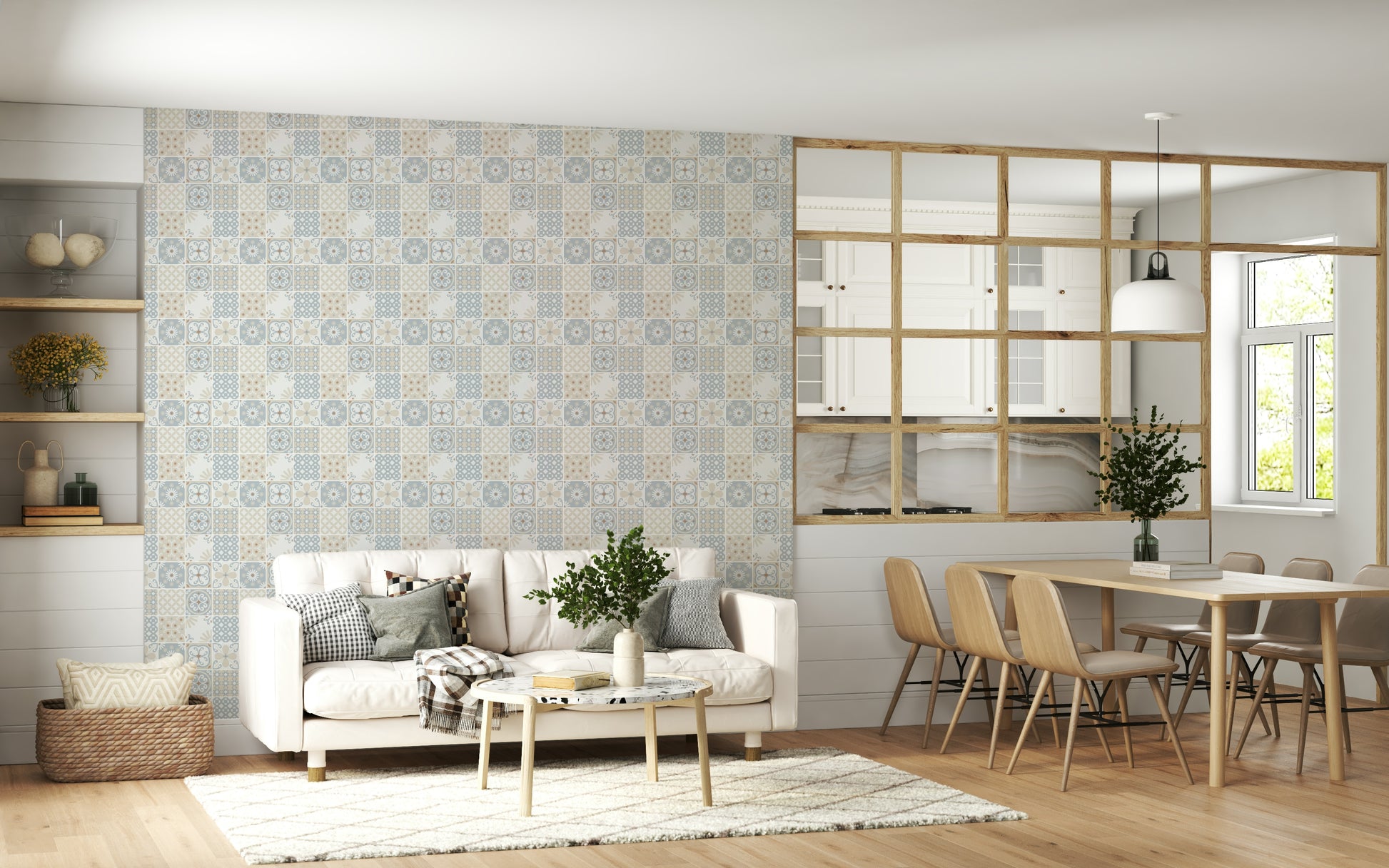 Vintage Folk Tiles – Blue Breeze Wallpaper⁠