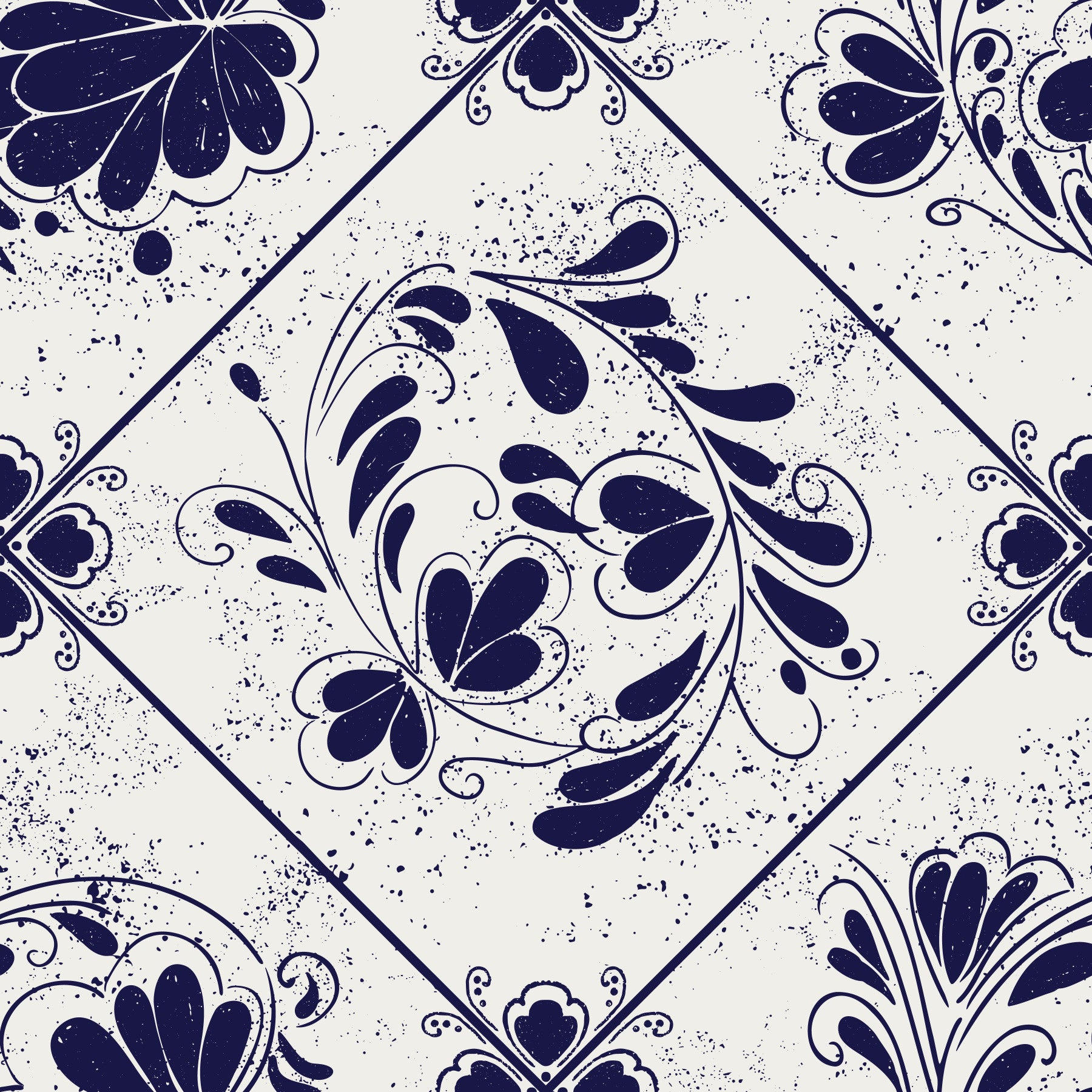 Embrace the timeless allure of vintage design with our "Vintage Indigo Floral Tiles". This stunning wall décor evokes the charm of handcrafted artistry, reminiscent of traditional ceramic tiles. The repeating pattern features delicate floral motifs in a rich indigo hue, artfully presented on an aged, slightly textured backdrop. The indigo designs pop against the light, off-white background, creating an intriguing visual contrast that is both calming and sophisticated. These beautifully rendered floral accents, interspersed with vintage distressing, add depth and character to any room, creating a stylish focal point. Transform your space into a haven of understated elegance with this classic and refined wall covering, bringing a touch of old-world grace to modern interiors. It captures the essence of time-worn beauty and breathes new life into your walls.