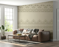 Introduce refined detail to your interiors with this classic wallpaper for walls. The layered lace bands create a subtle texture with refined floral and scrollwork motifs. The warm beige palette brings a soft, comforting feel to any room. Ideal for bedrooms, living rooms, or hallways, this design adds understated refinement. It provides a backdrop that blends well with various décor styles, from traditional to contemporary. The intricate elements of the lace enhance the sense of space and depth within the room.