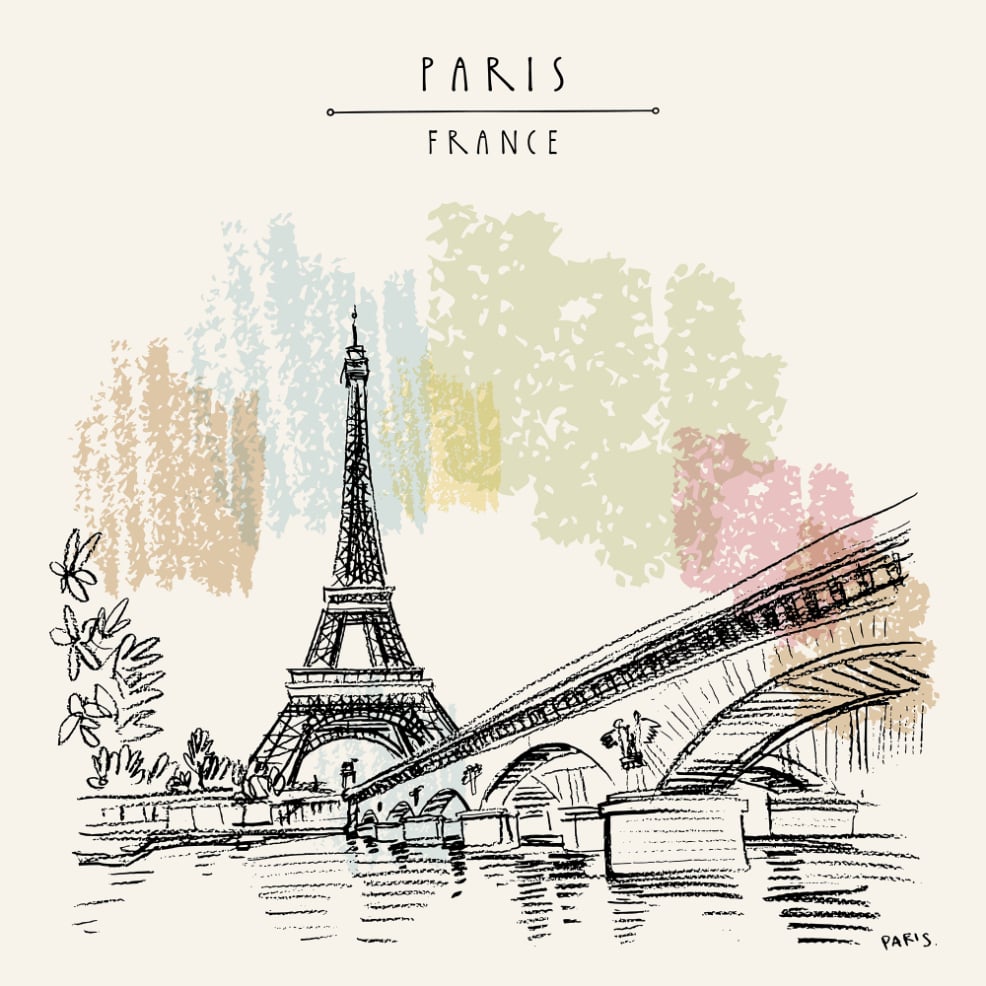 Vintage Paris Landmarks Collage Wall Mural - Giffywalls