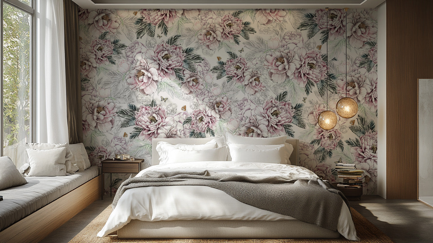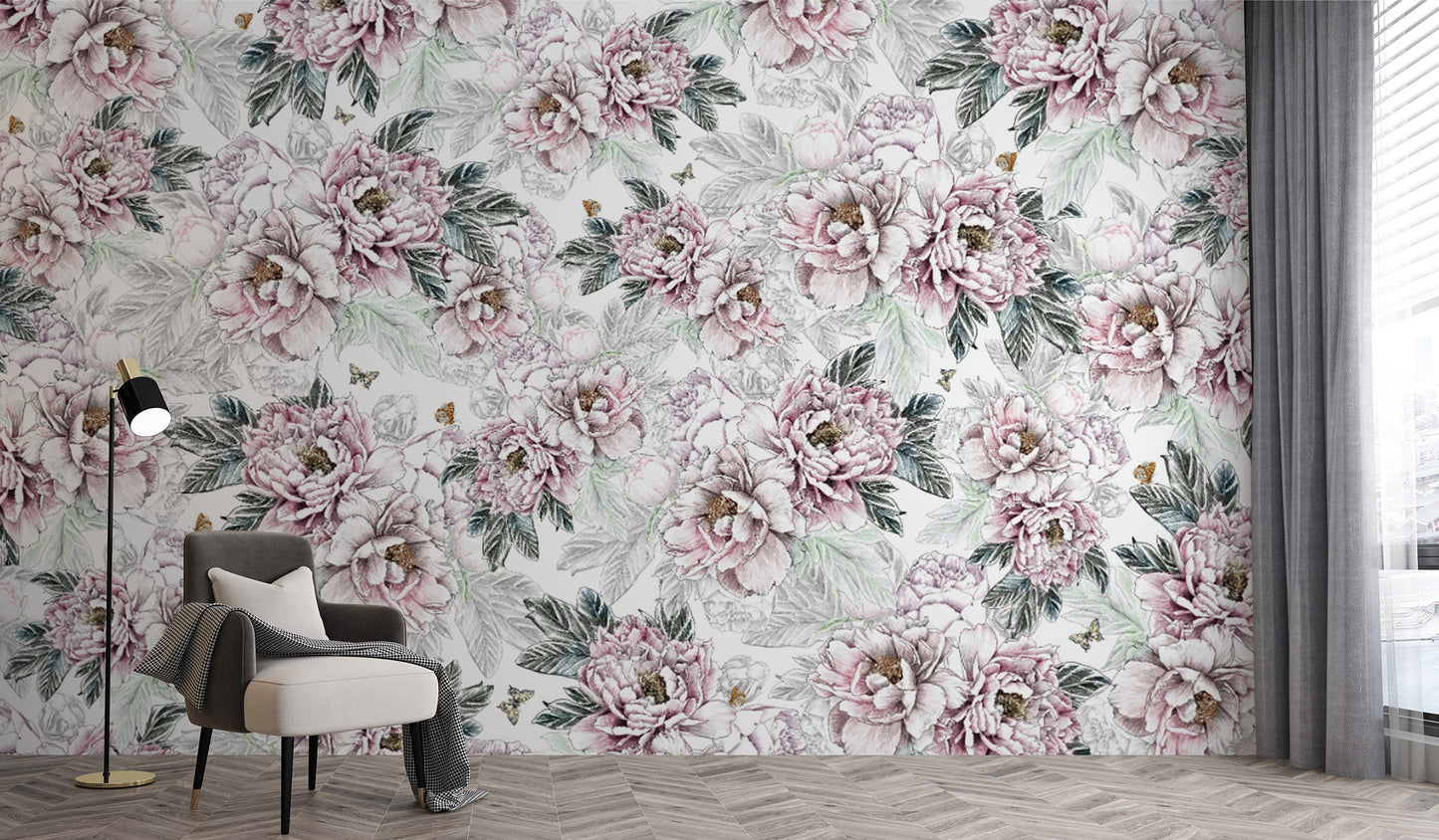 Vintage Peony Floral Wallpaper Mural