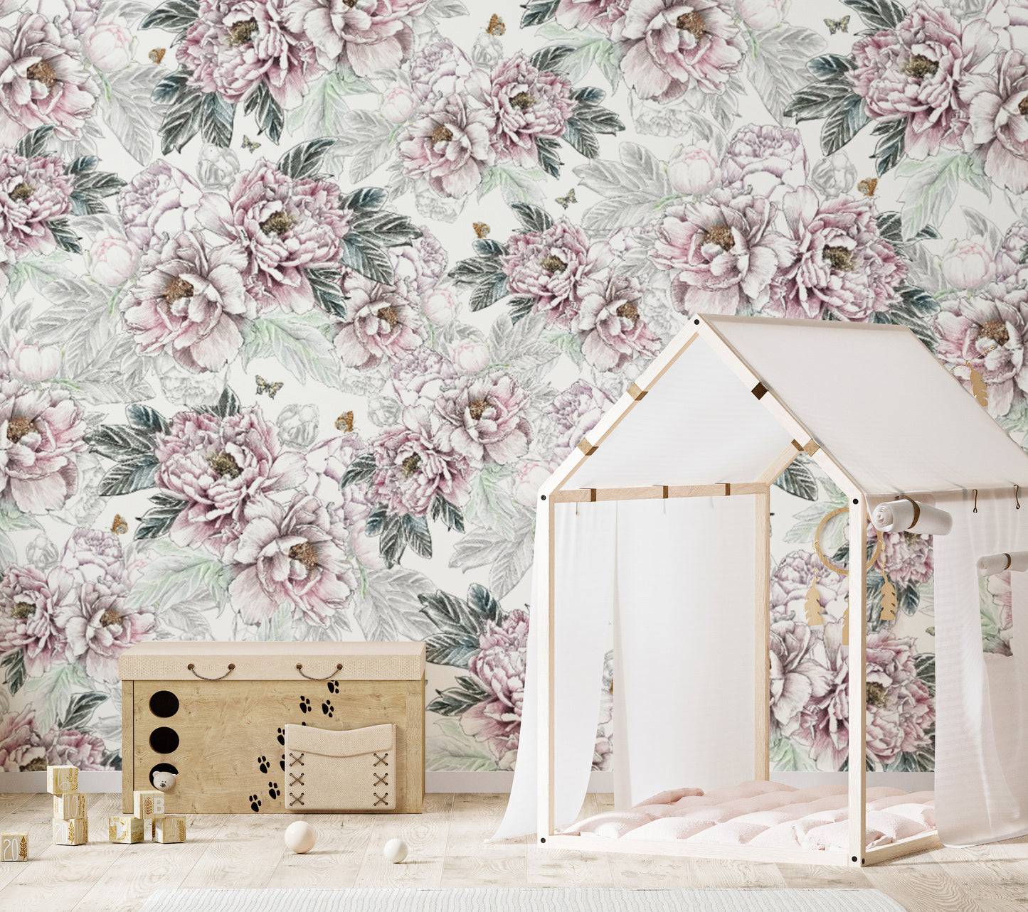 Redecorate your space using the vintage peony floral wallpaper wall mural in hand-painted peonies, muted pinks, and decadent floral garden elements. This beautiful floral wall covering gives the bedroom, living room, or dining room a classical lilt. The delicate watercolor floral design adds a romantic and elegant charm to any room. An ideal solution for luxury floral atmospheres, this shabby chic wallpaper works in both traditional and contemporary settings. Level up your walls with the charm of soft pink peonies and the sophisticated cool of vintage floral wallpaper intended for a comfy feel.
