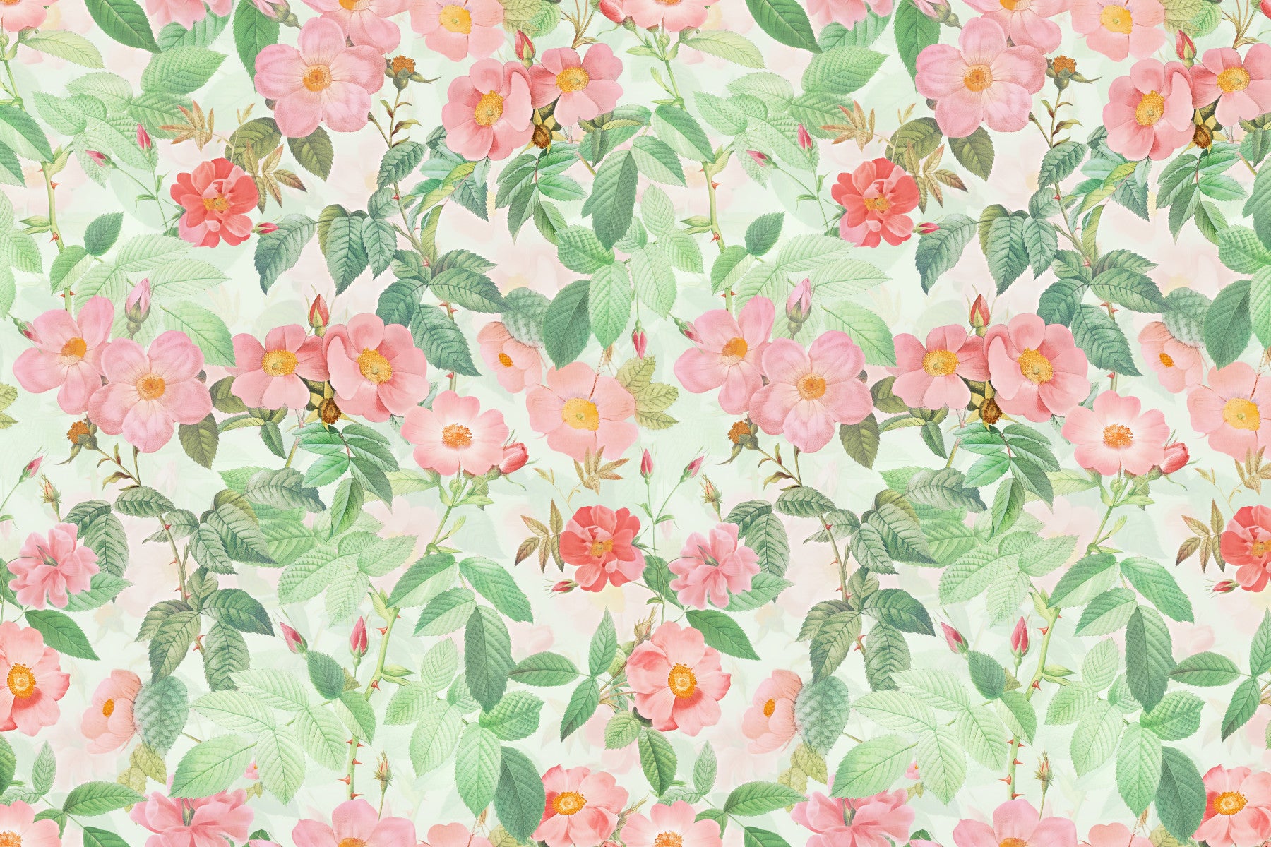 Bring the charm of a vintage rose garden indoors with this delicate floral design by Uta Naumann. Pink and coral roses intertwine with lush green foliage on a subtle background. Perfect for bedrooms, living rooms, or dining rooms, this wallpaper for walls creates a calm and relaxing space. The gentle colours complement a range of interiors, from classic to modern farmhouse, adding a touch of timeless beauty to any room. Transform your home with this elegant botanical pattern.